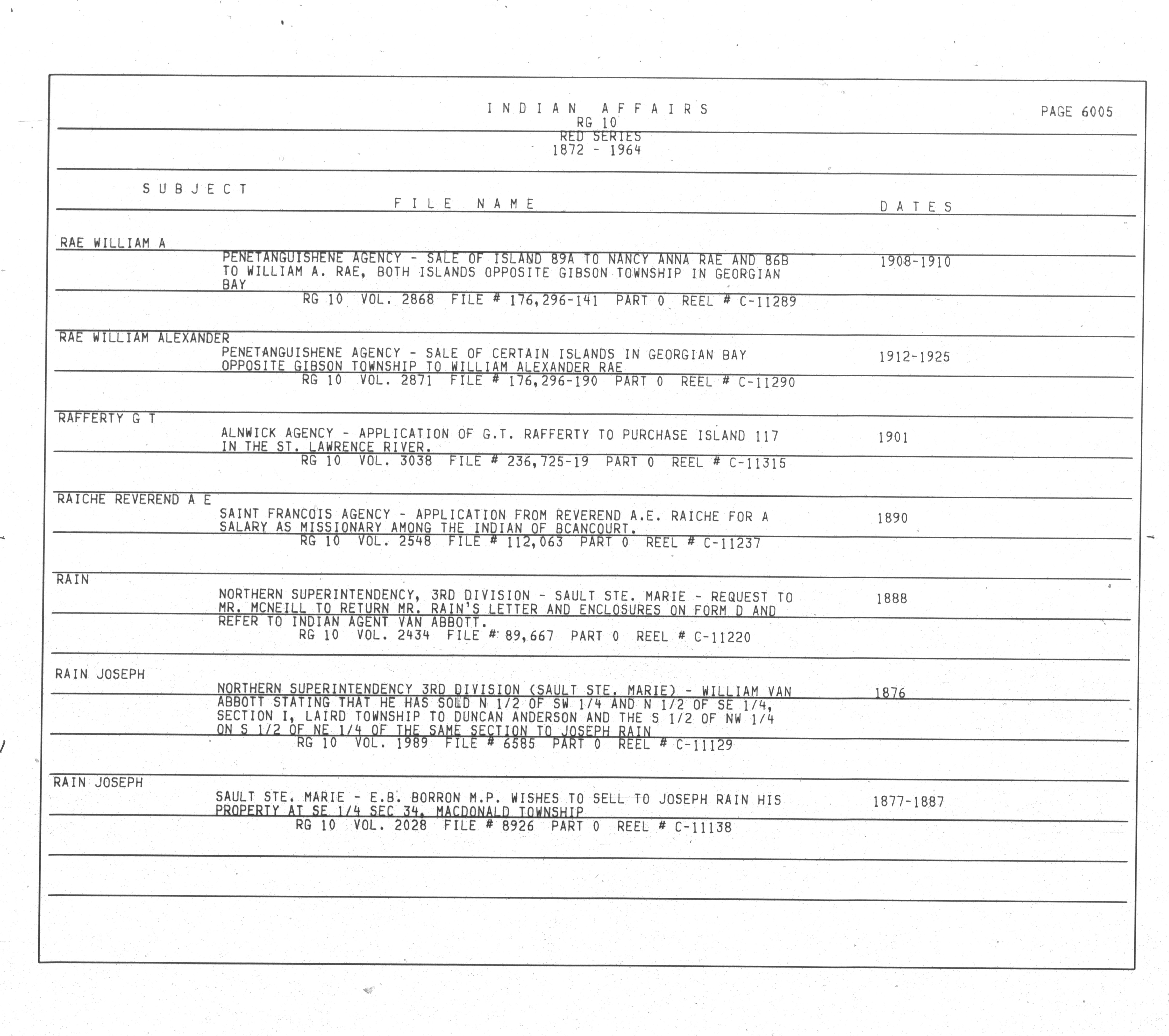 Subject list to the Red Series documents of the Department of Indian Affairs, 1872-1964 - 15716