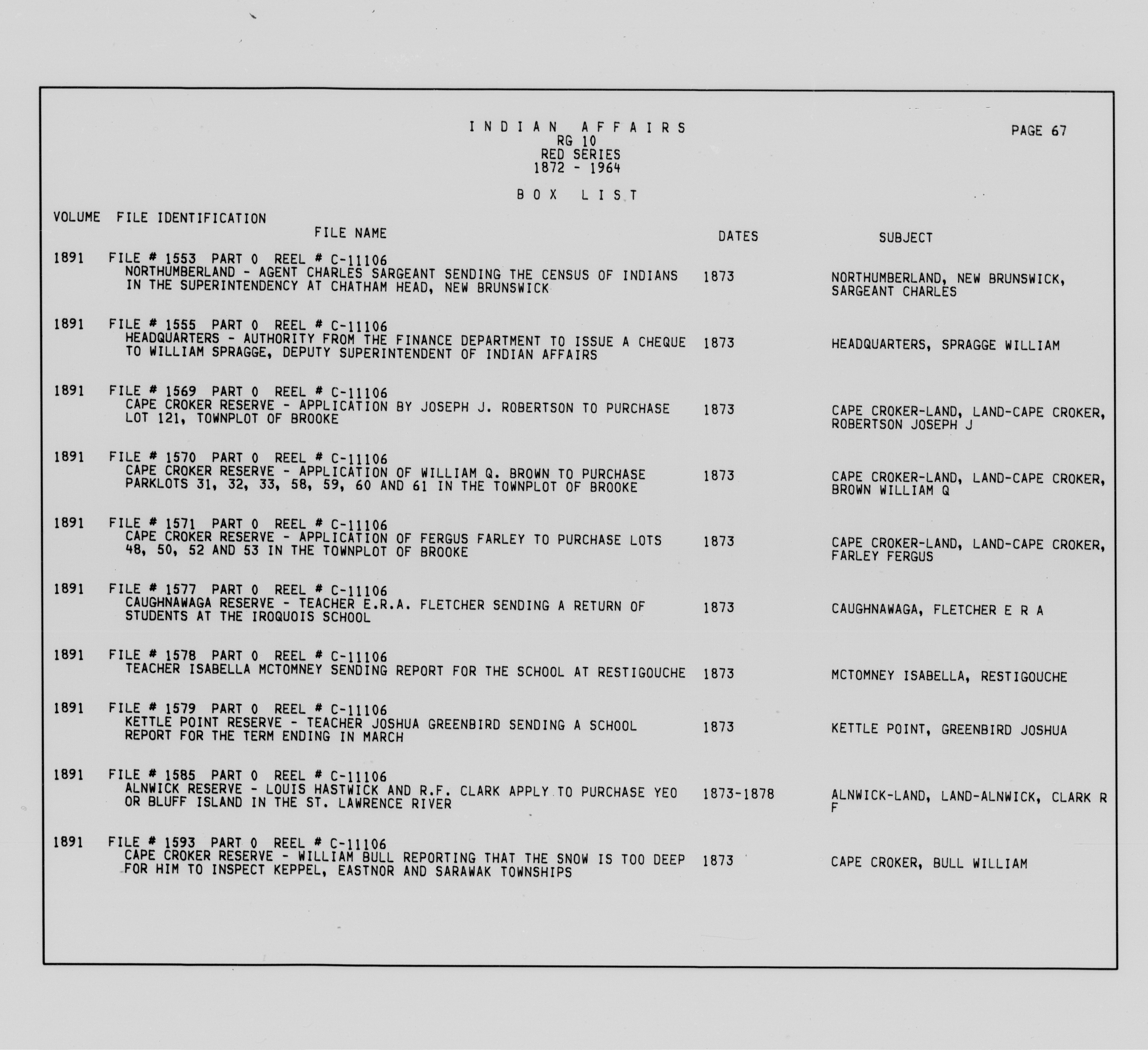 Box list to the Red Series documents of the Department of Indian Affairs, for microform reels C-11103 to C-11348 - 15717