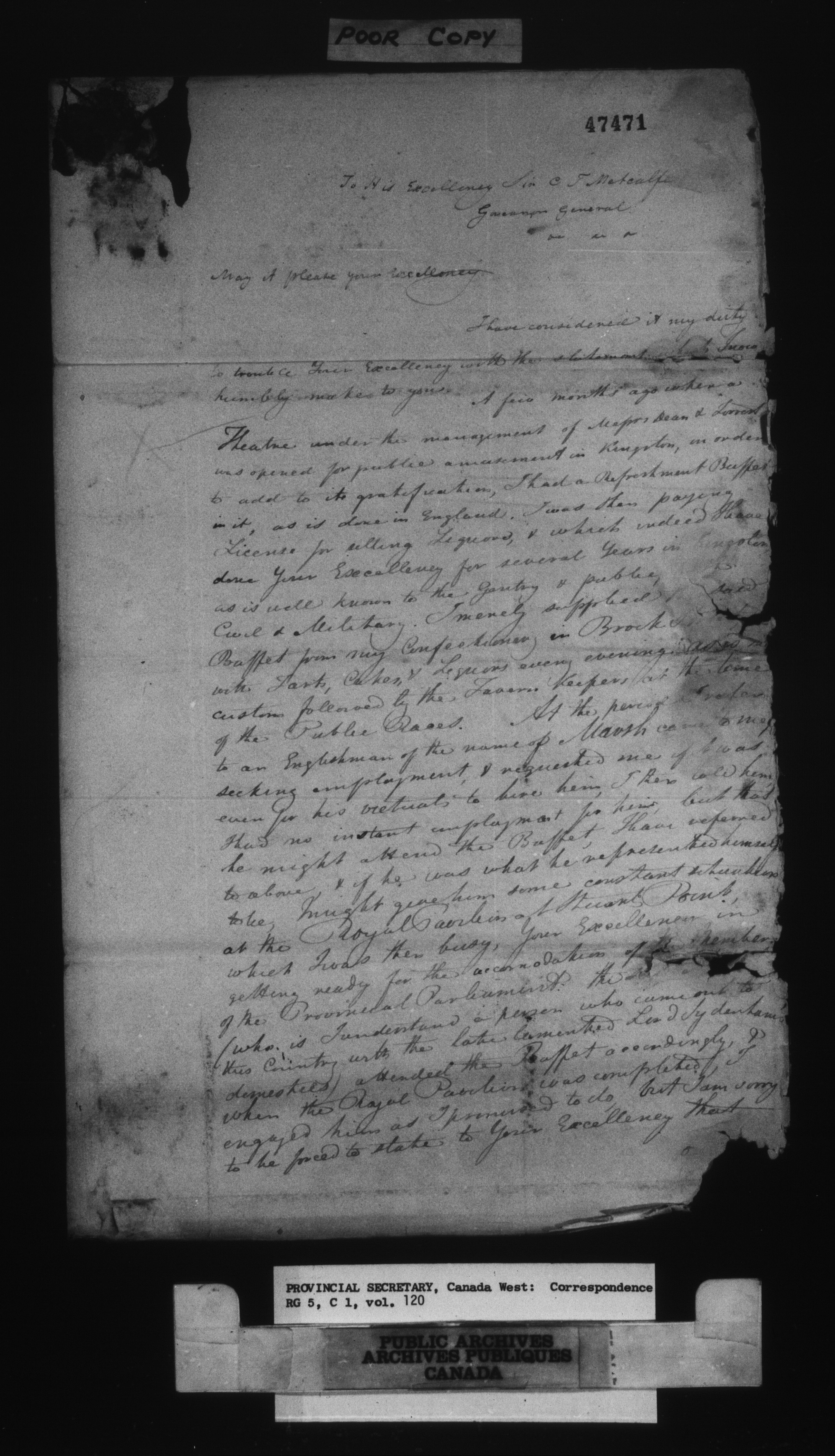 RG 5 C1, Provincial Secretary, Correspondence, Canada West - 15753
