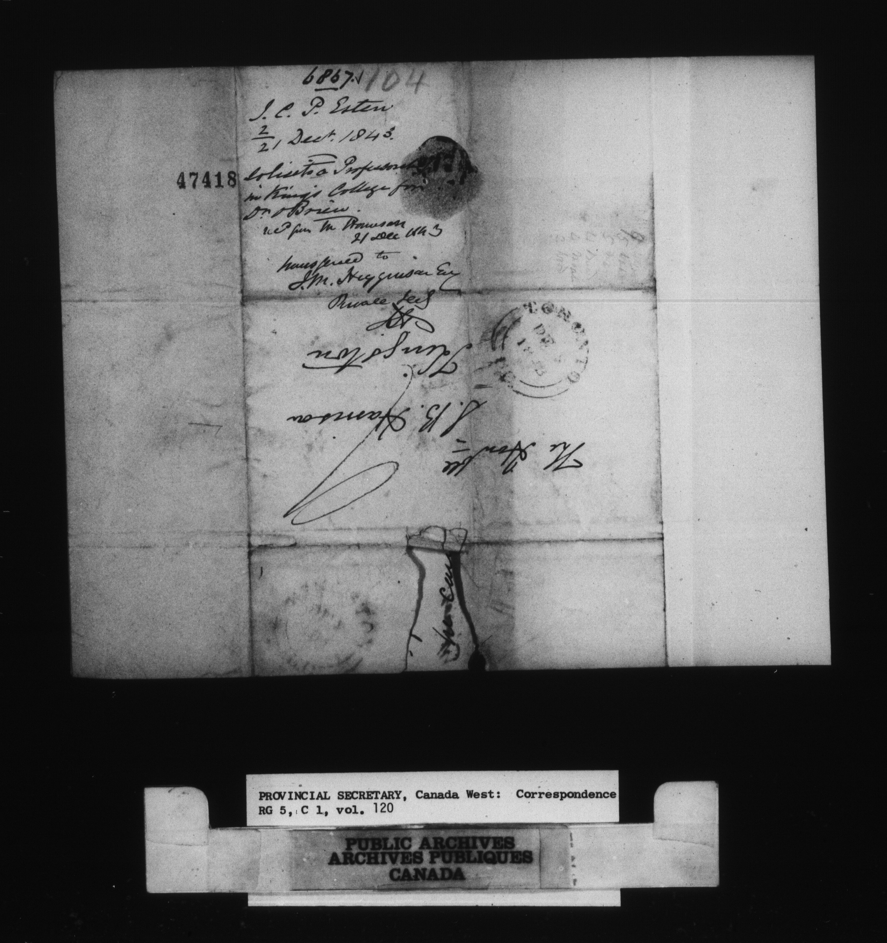 RG 5 C1, Provincial Secretary, Correspondence, Canada West - 15754
