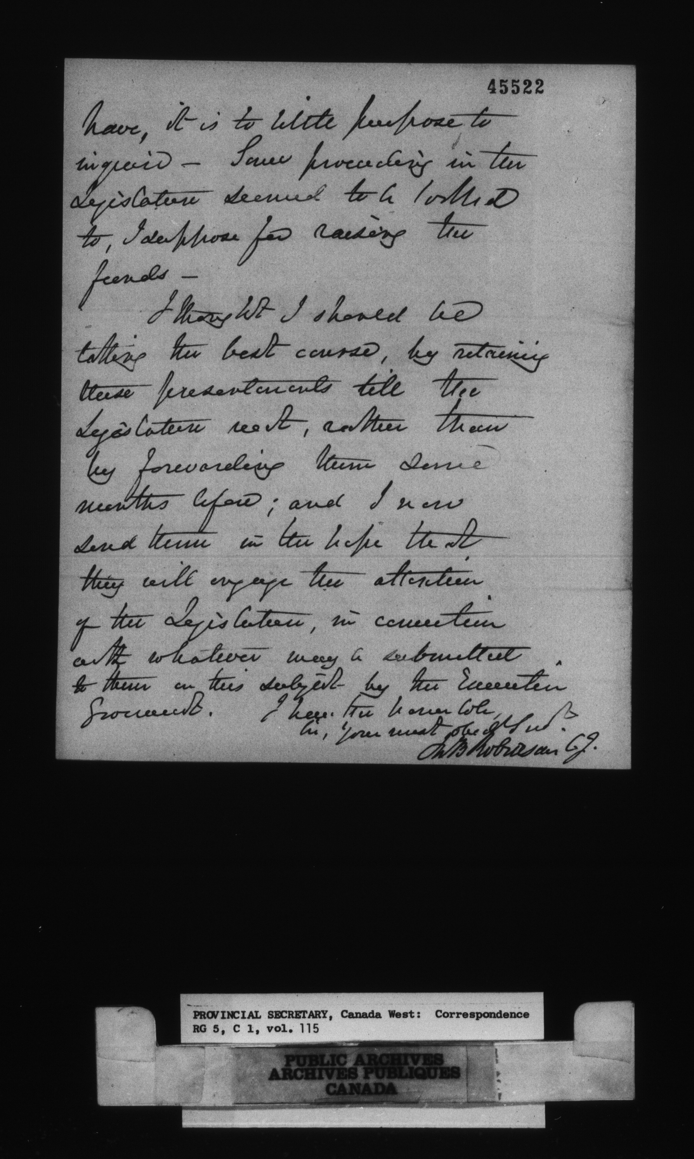 RG 5 C1, Provincial Secretary, Correspondence, Canada West - 15755