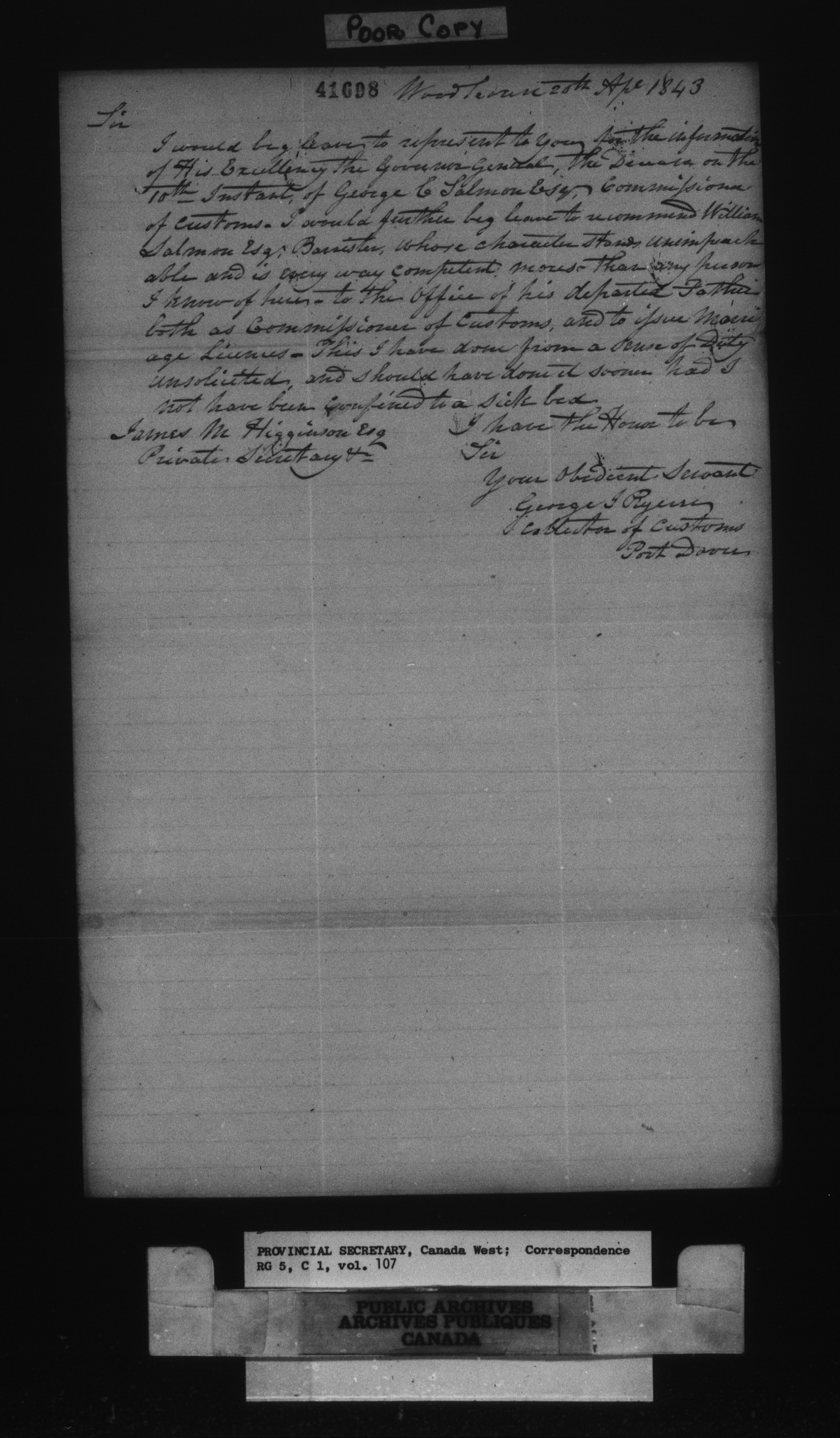 RG 5 C1, Provincial Secretary, Correspondence, Canada West - 15757