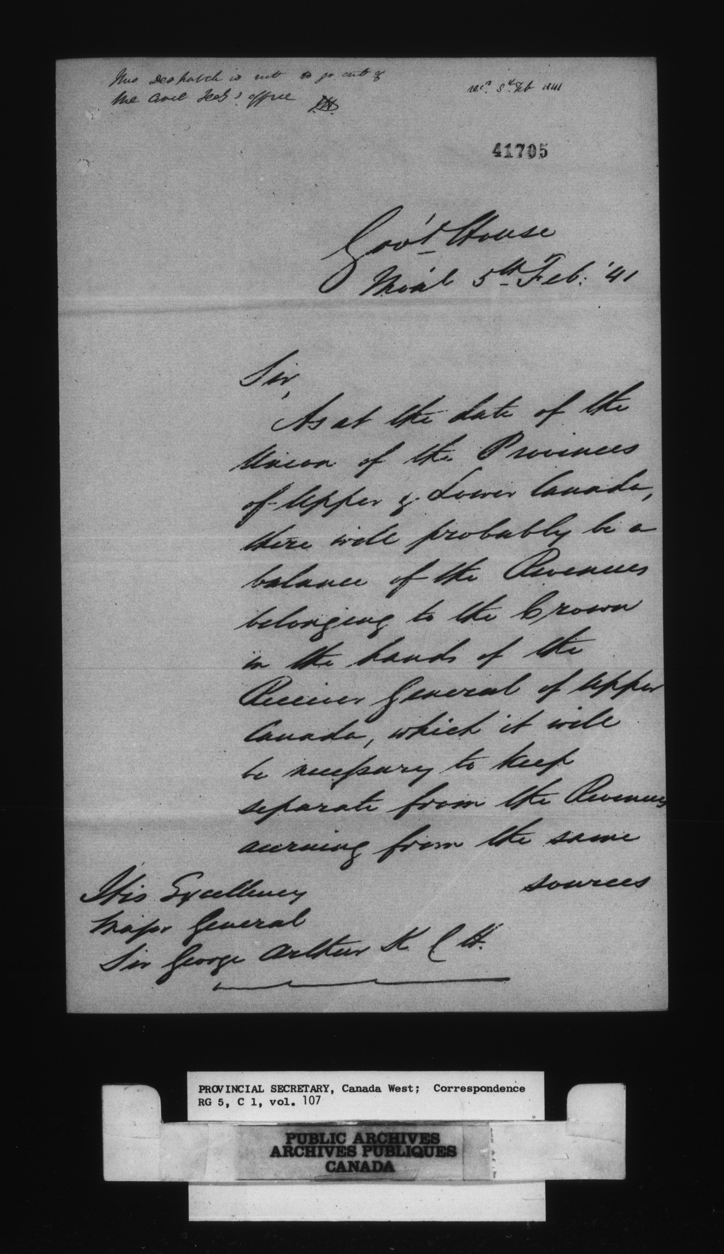 RG 5 C1, Provincial Secretary, Correspondence, Canada West - 15757