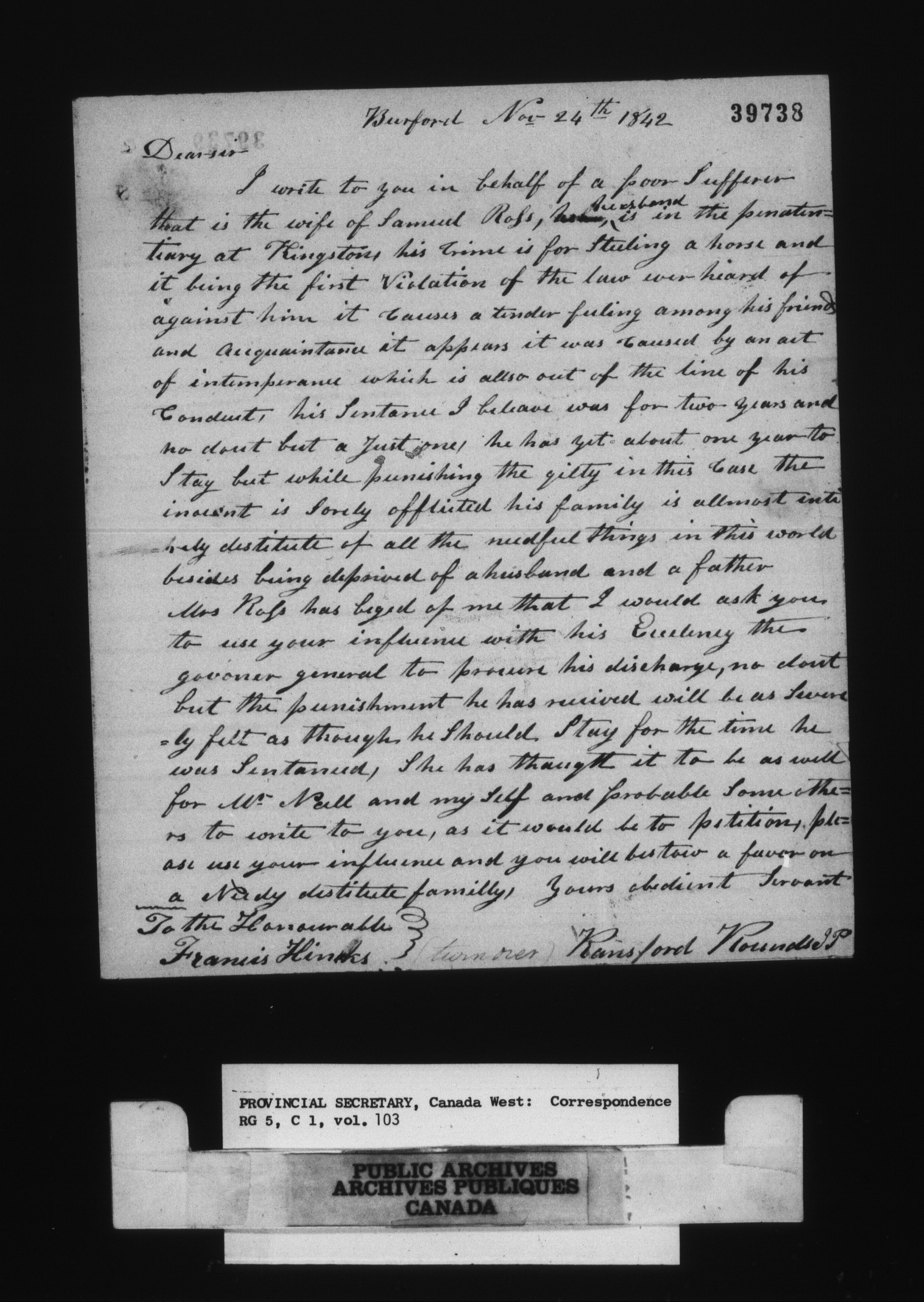 RG 5 C1, Provincial Secretary, Correspondence, Canada West - 15757