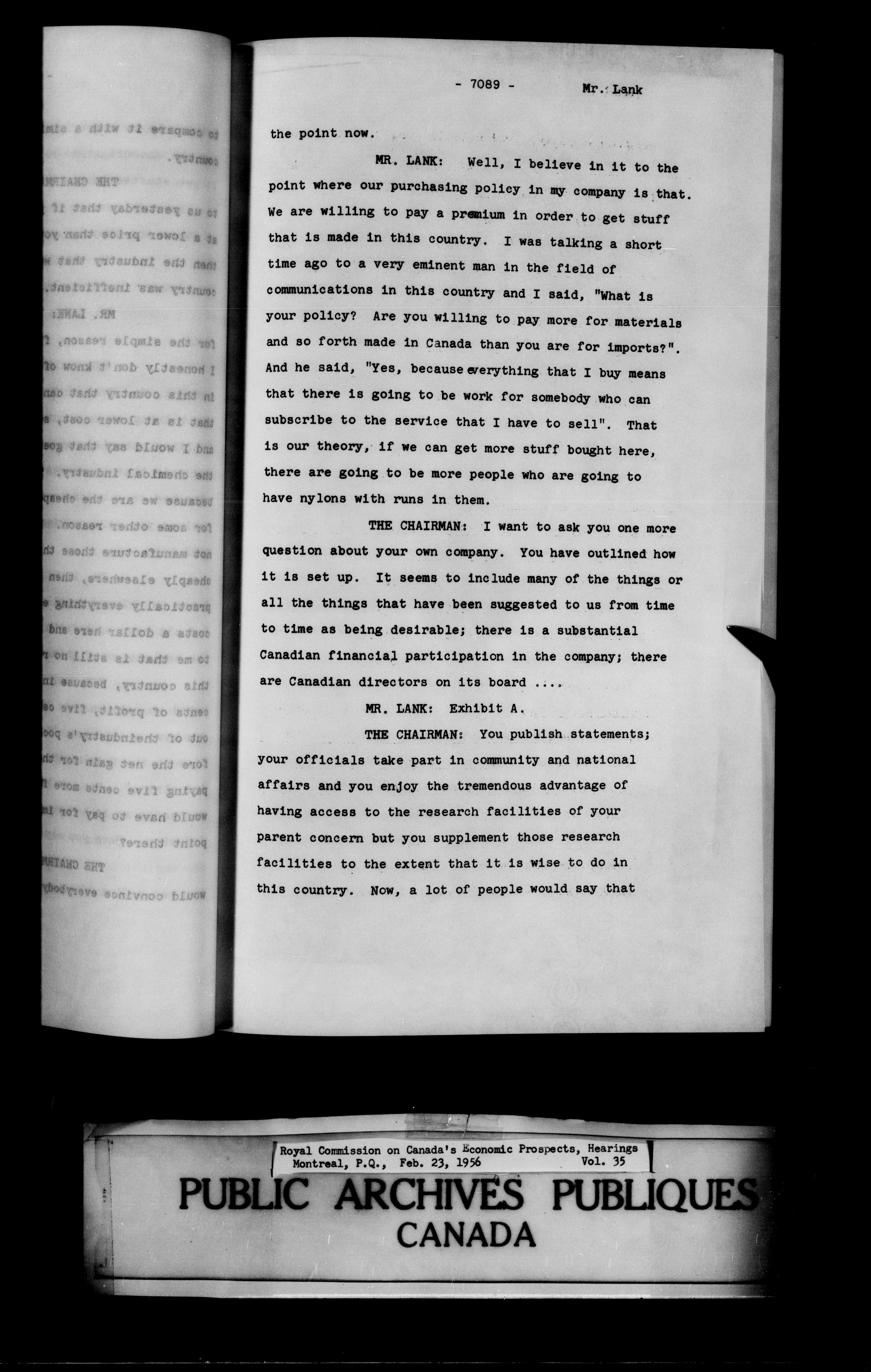 Royal Commission on Economic Prospects, Hearings - 1577
