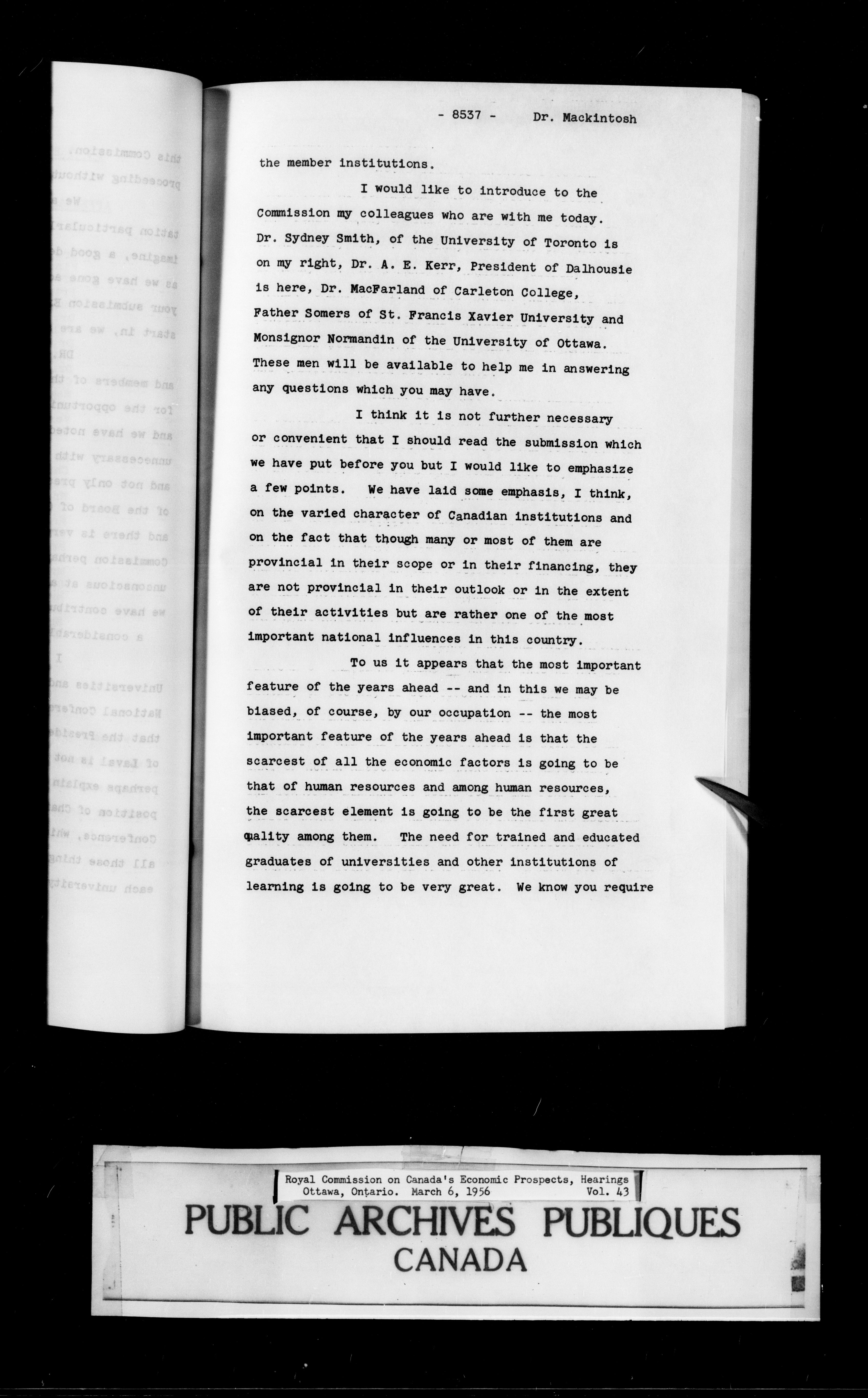Royal Commission on Economic Prospects, Hearings - 1578