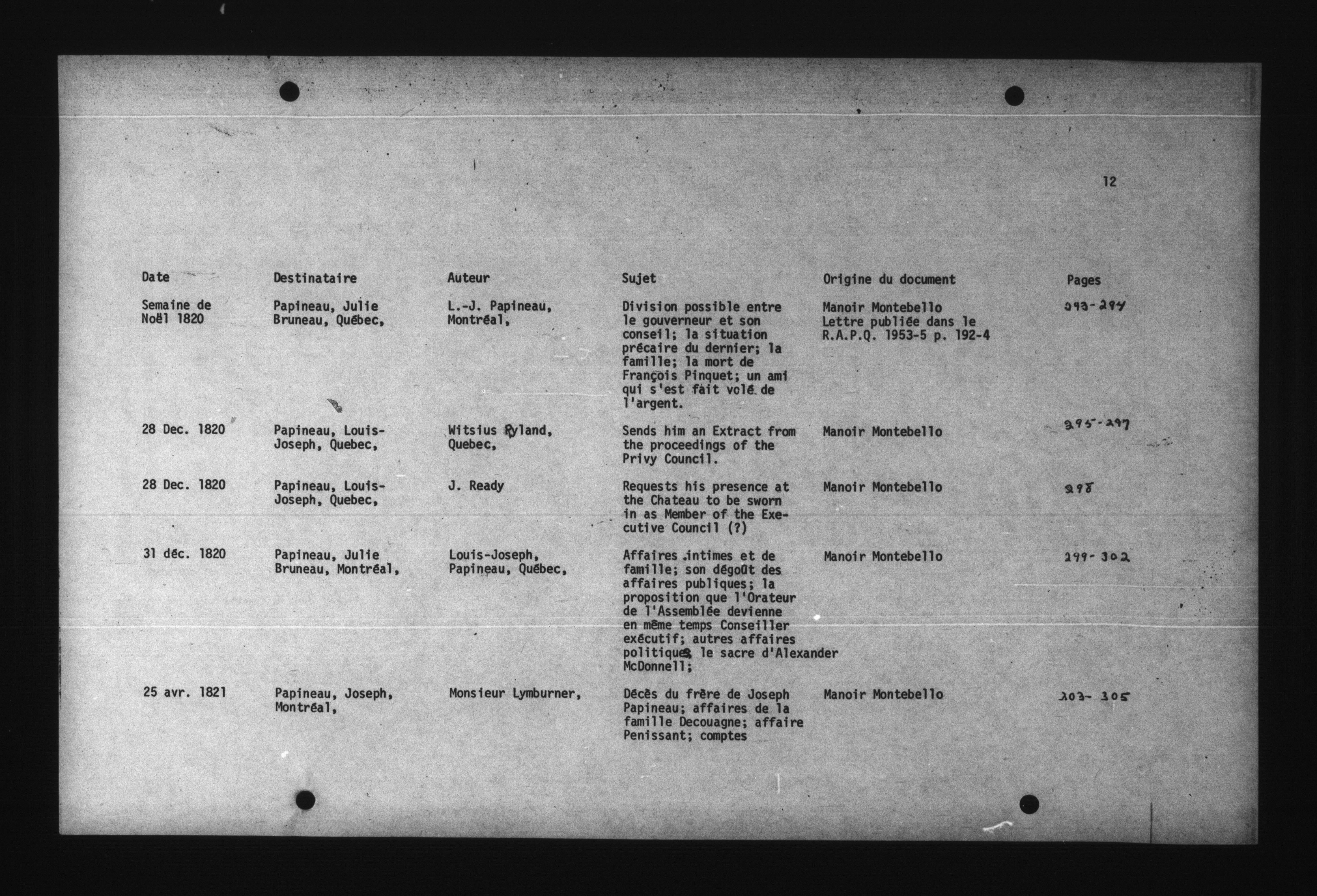 Collection de la famille Papineau : Instrument de recherche no 292 - 15788