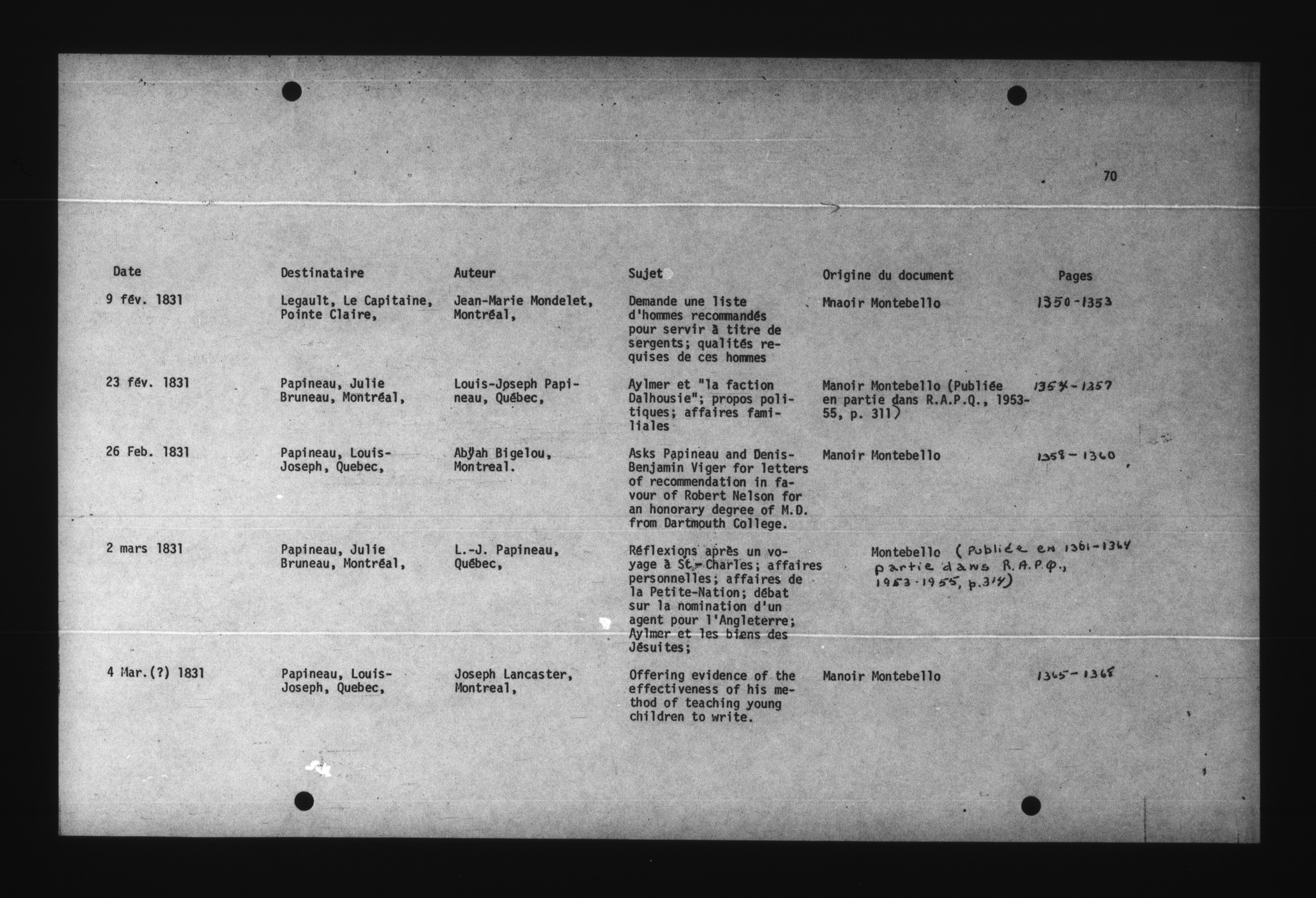Collection de la famille Papineau : Instrument de recherche no 292 - 15788