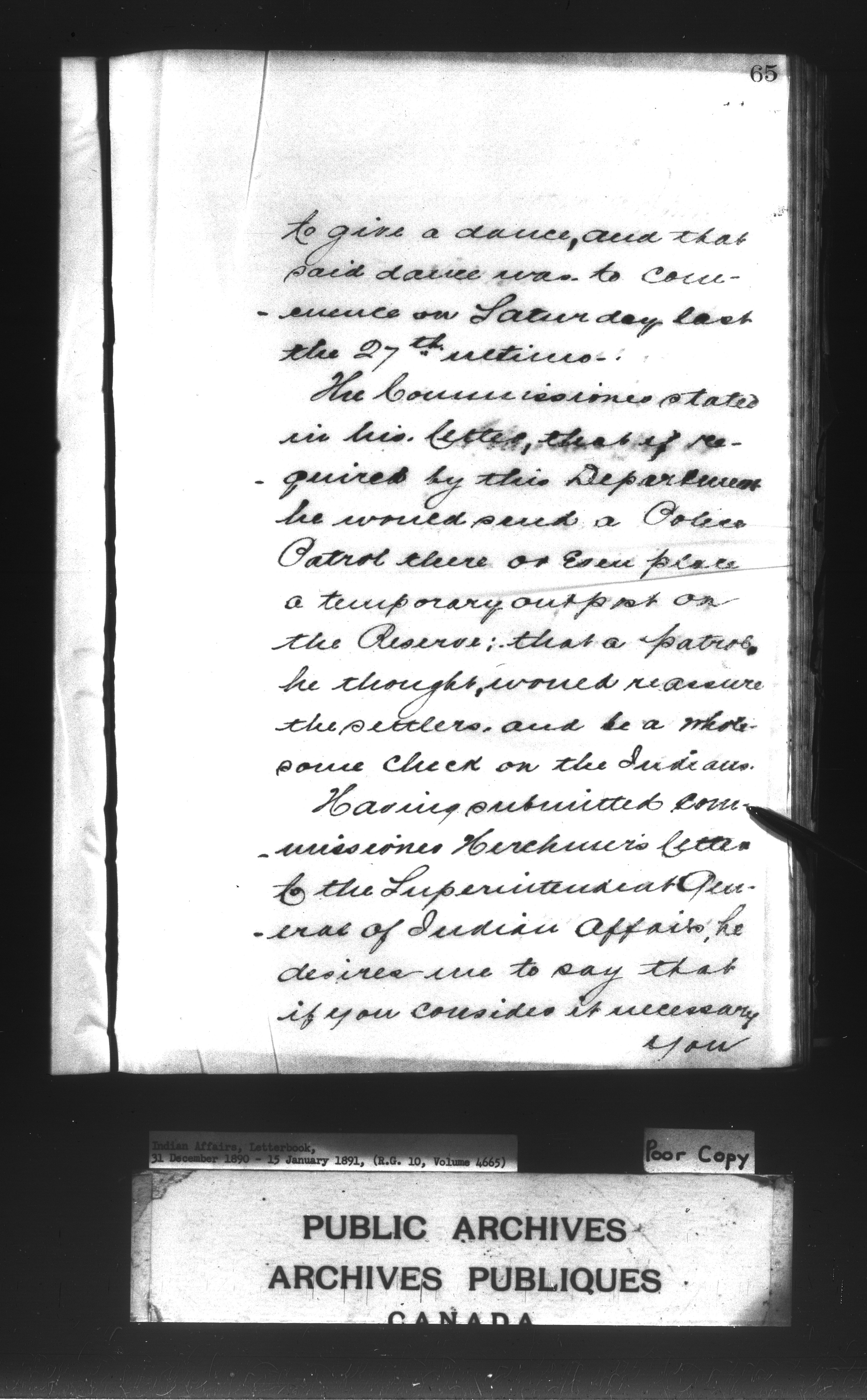 Department of Indian Affairs : Letterbooks of out-going correspondence relating to the administration of Indian Affairs in both eastern and western Canada, 1871-1920 - 15864