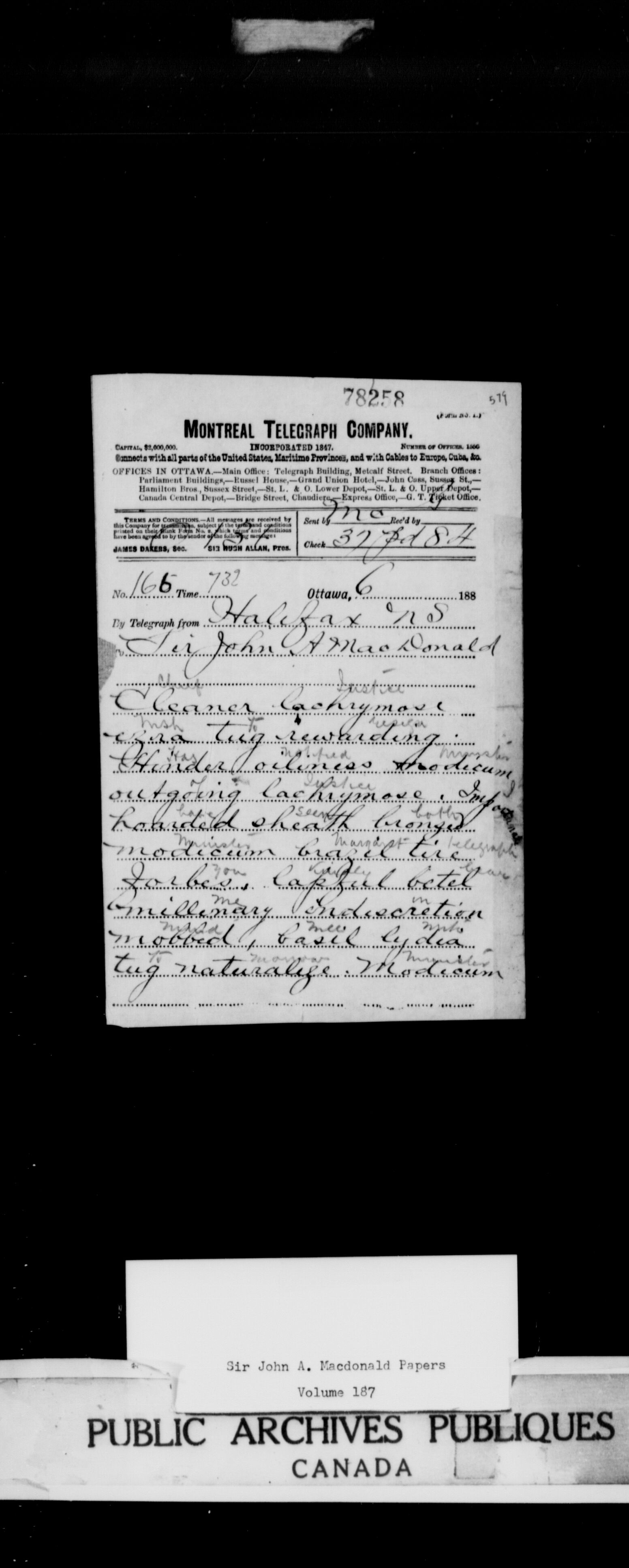 Sir John A. Macdonald : Political papers. Subject files : C-1587