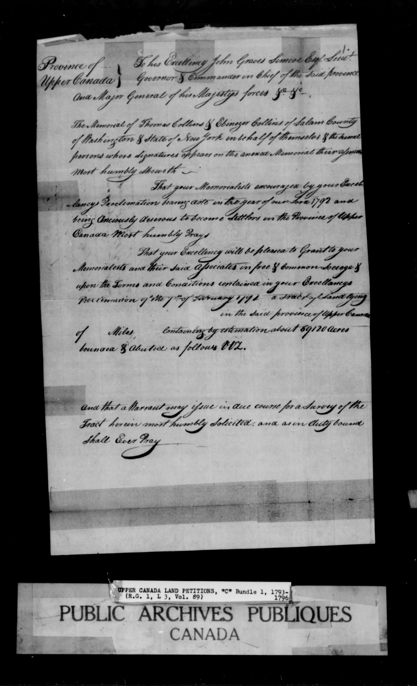 Land submissions to the Executive Council : Upper Canada Land Petitions "C"