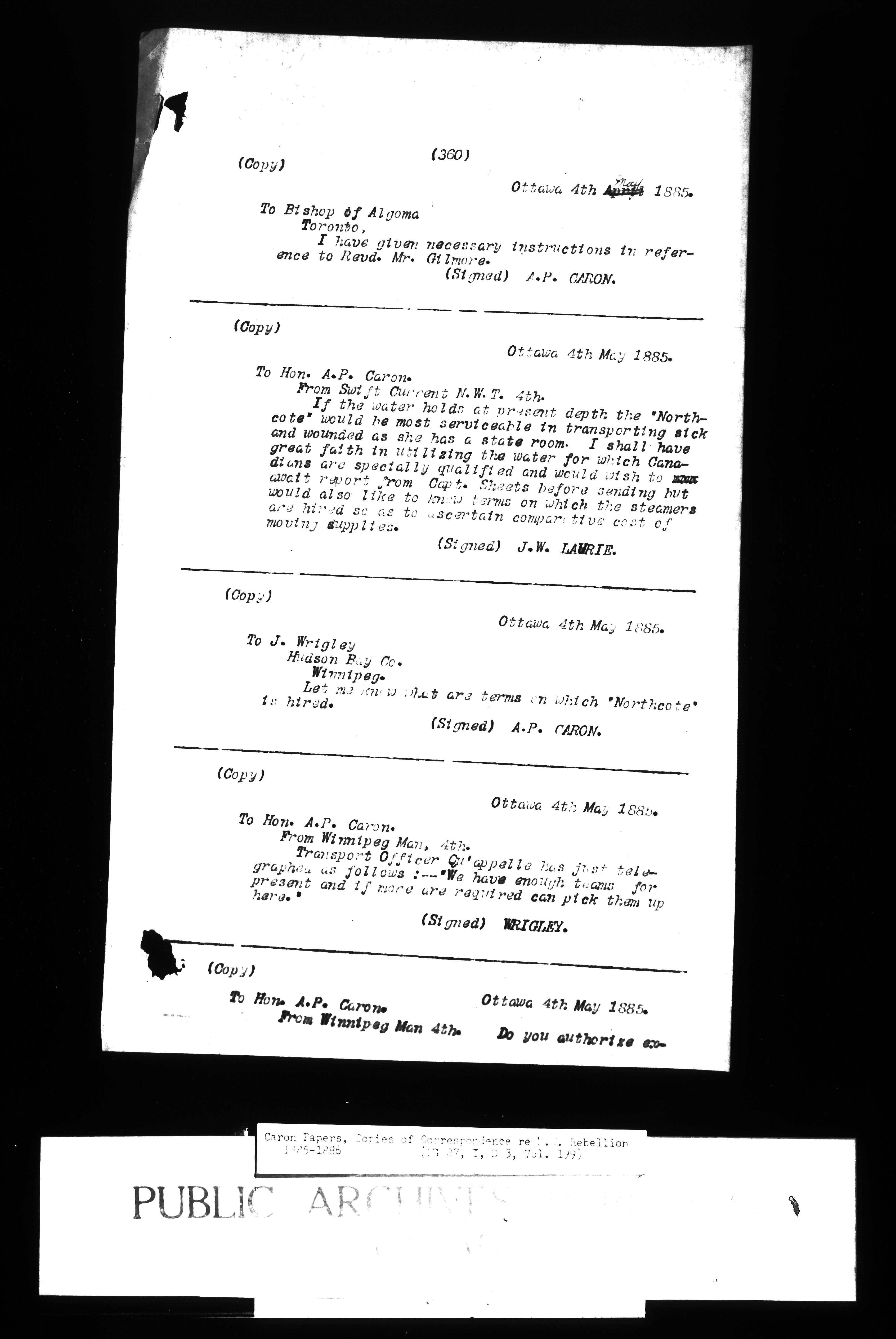 Caron Papers - Correspondence arranged in chronological order concerning the Northwest Rebellion, May 1885-Feb 1886 - 1654