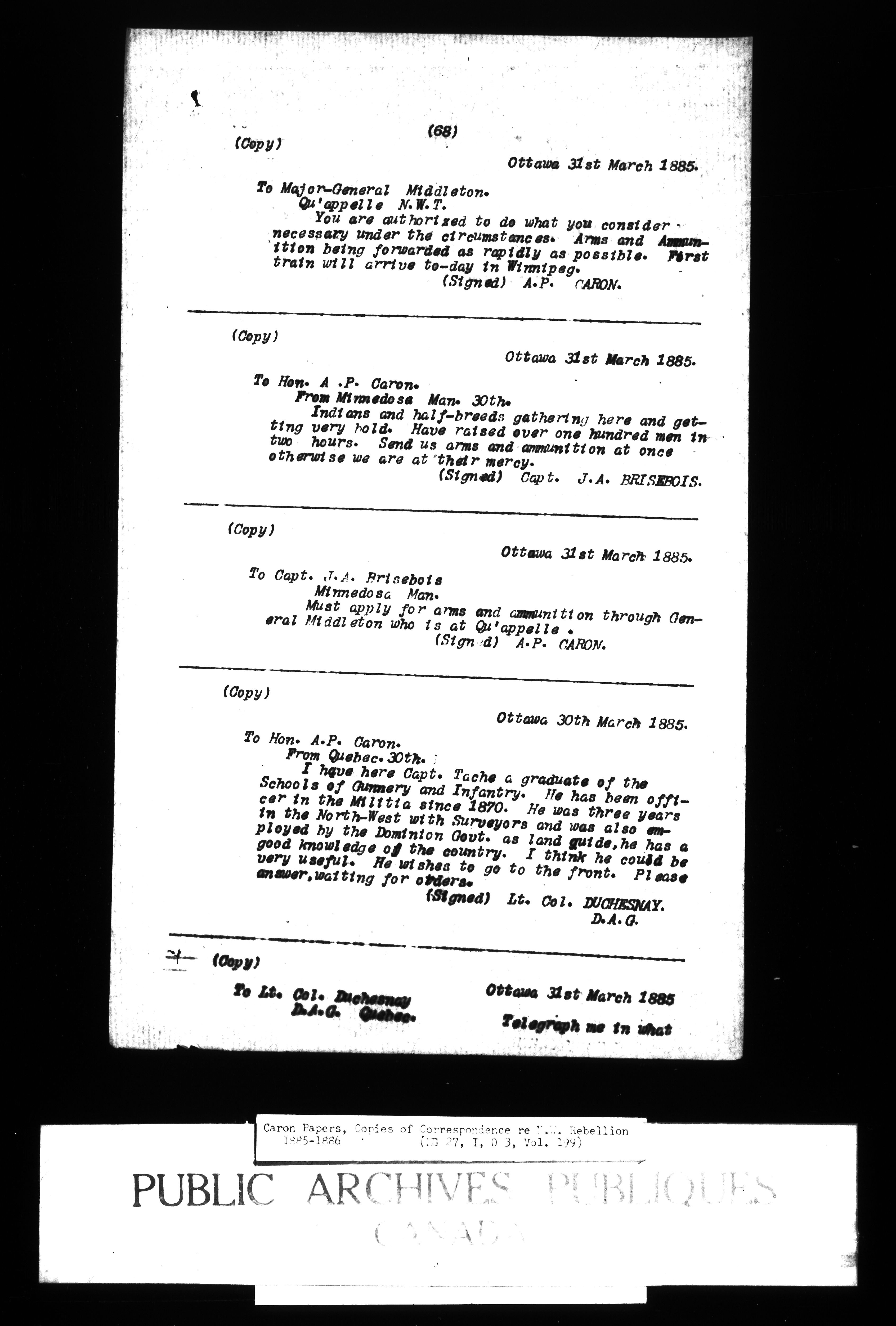 Caron Papers - Correspondence arranged in chronological order concerning the Northwest Rebellion, May 1885-Feb 1886 - 1654