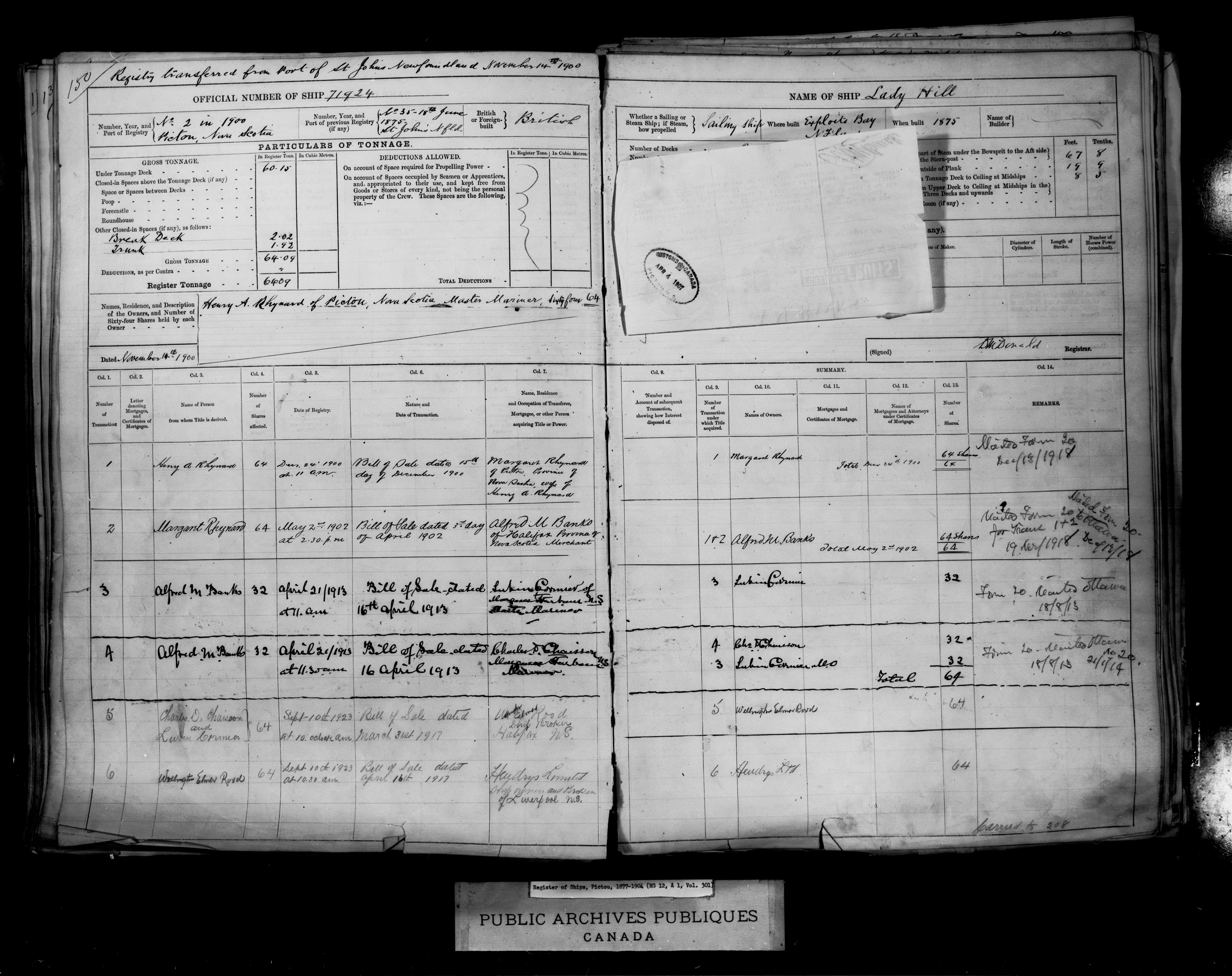 Pictou, N. S. Shipping Registers, 1867-1904 - 1722