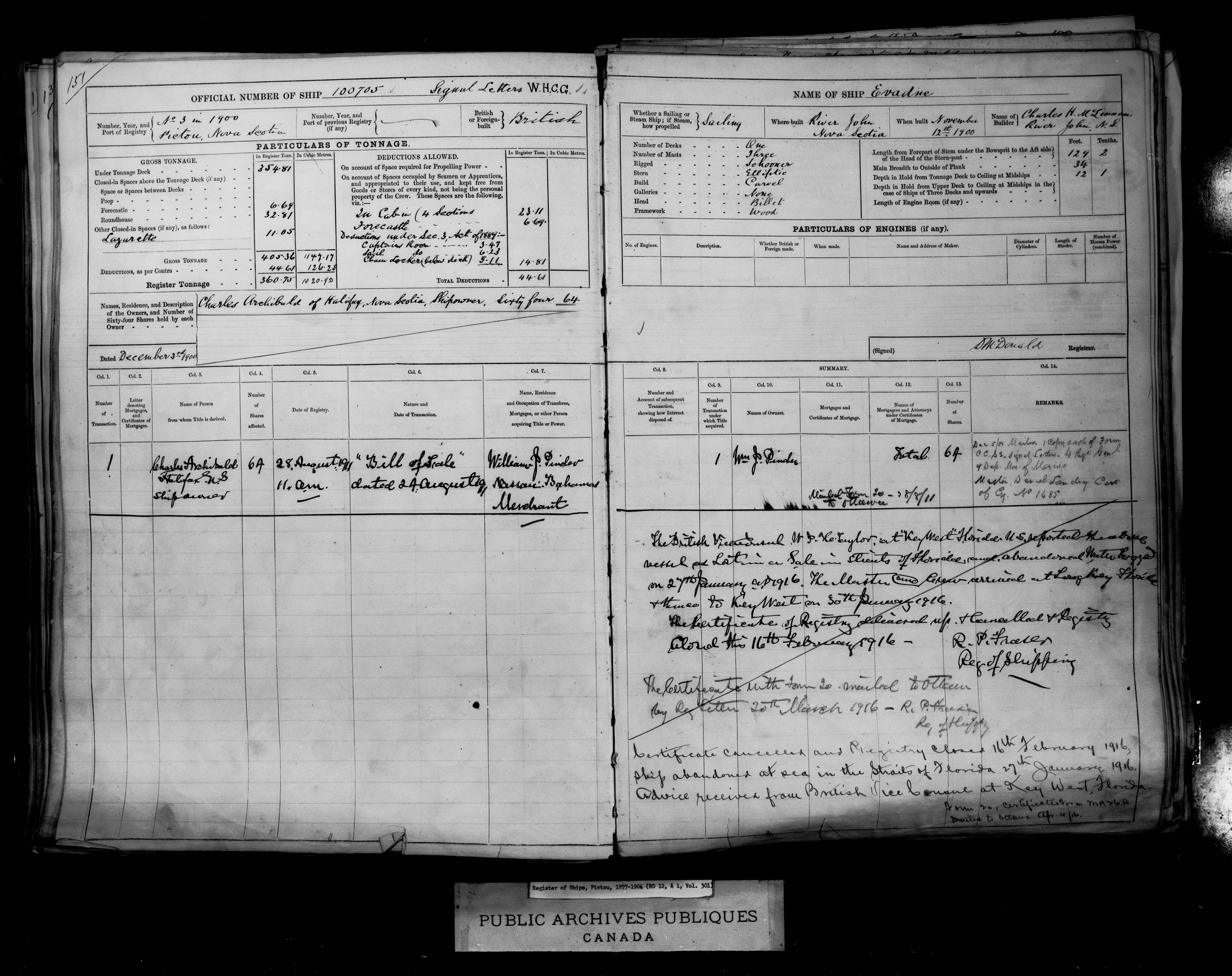 Pictou, N. S. Shipping Registers, 1867-1904 - 1722