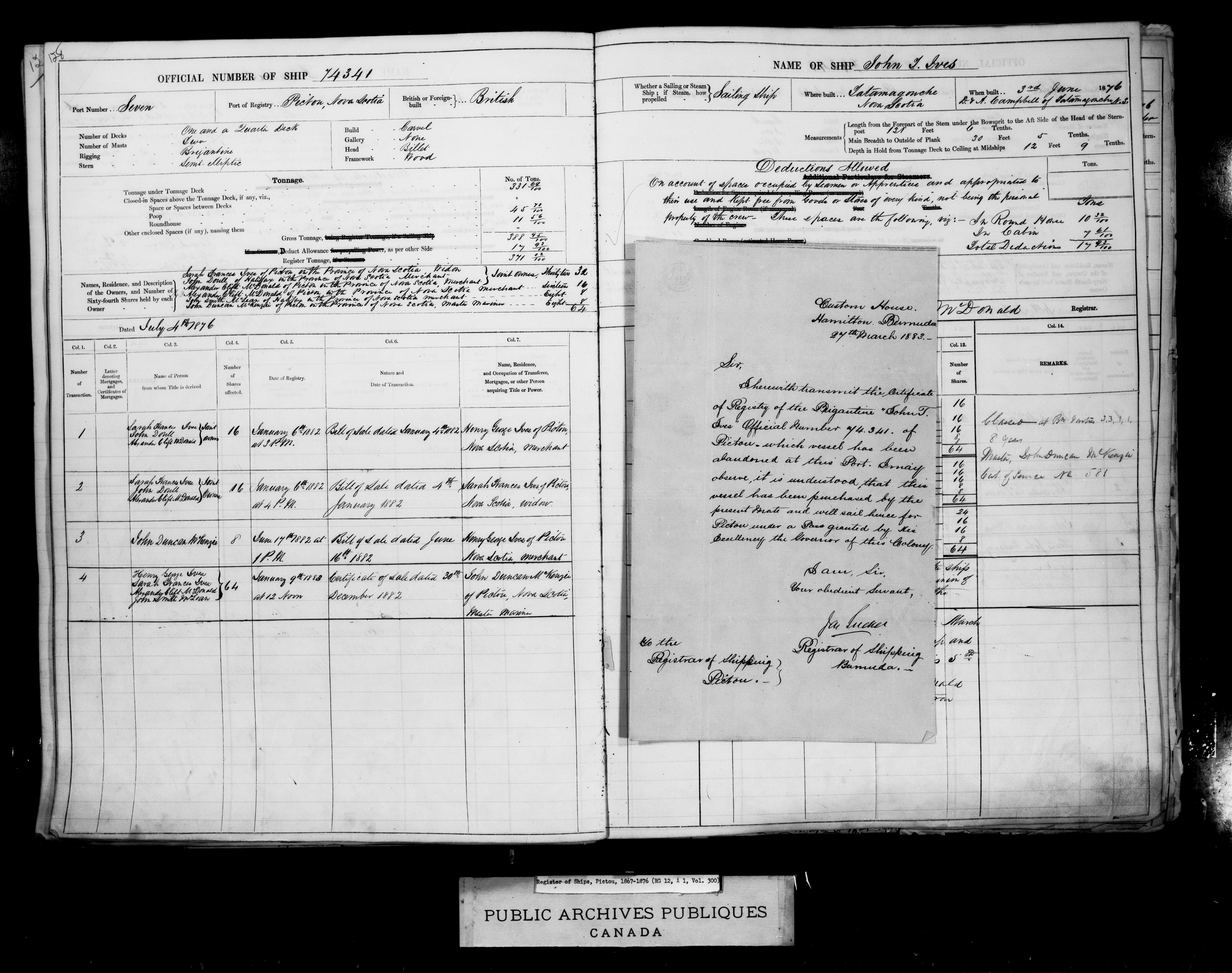 Pictou, N. S. Shipping Registers, 1867-1904 - 1722