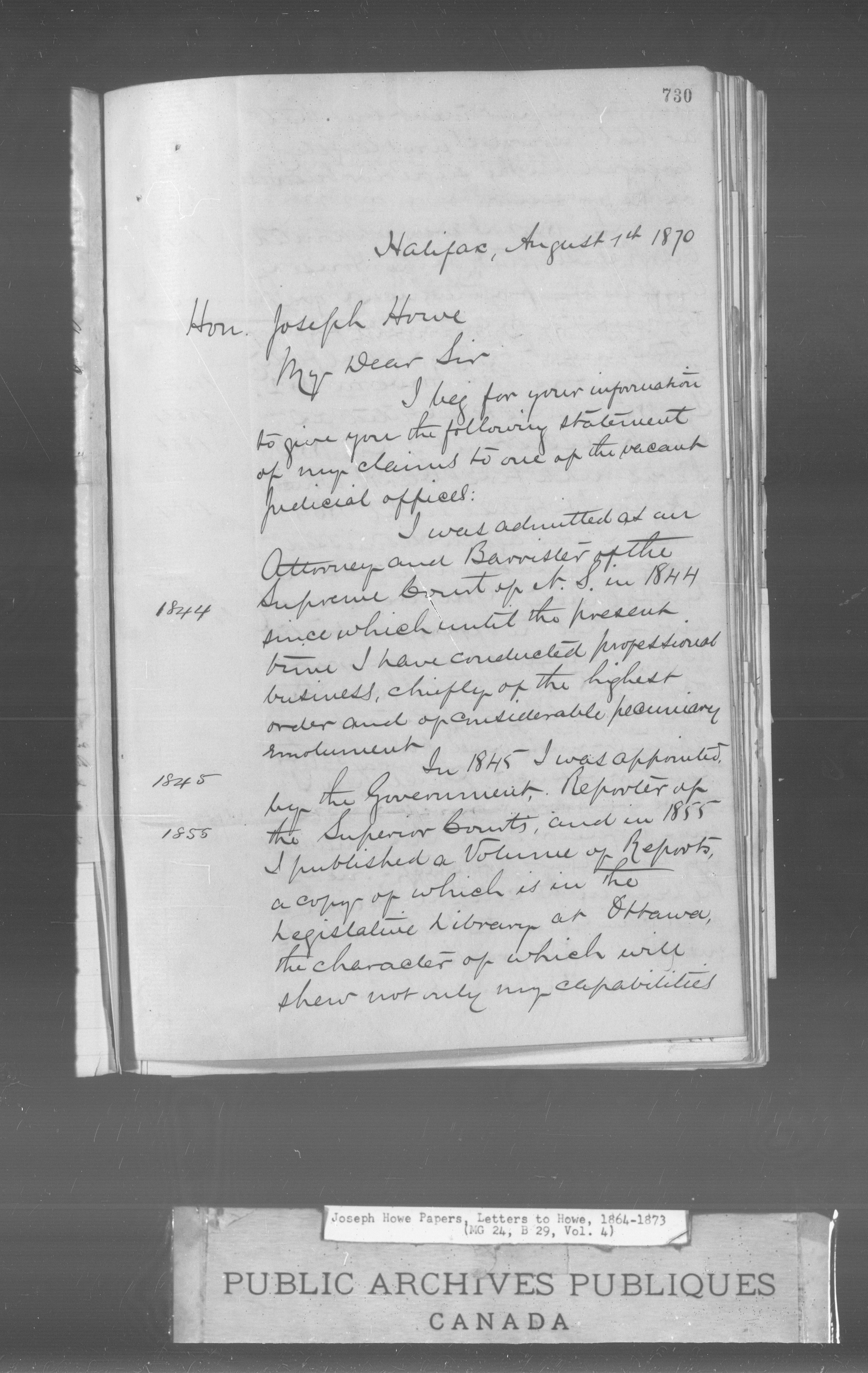 Joseph Howe Papers - 1831