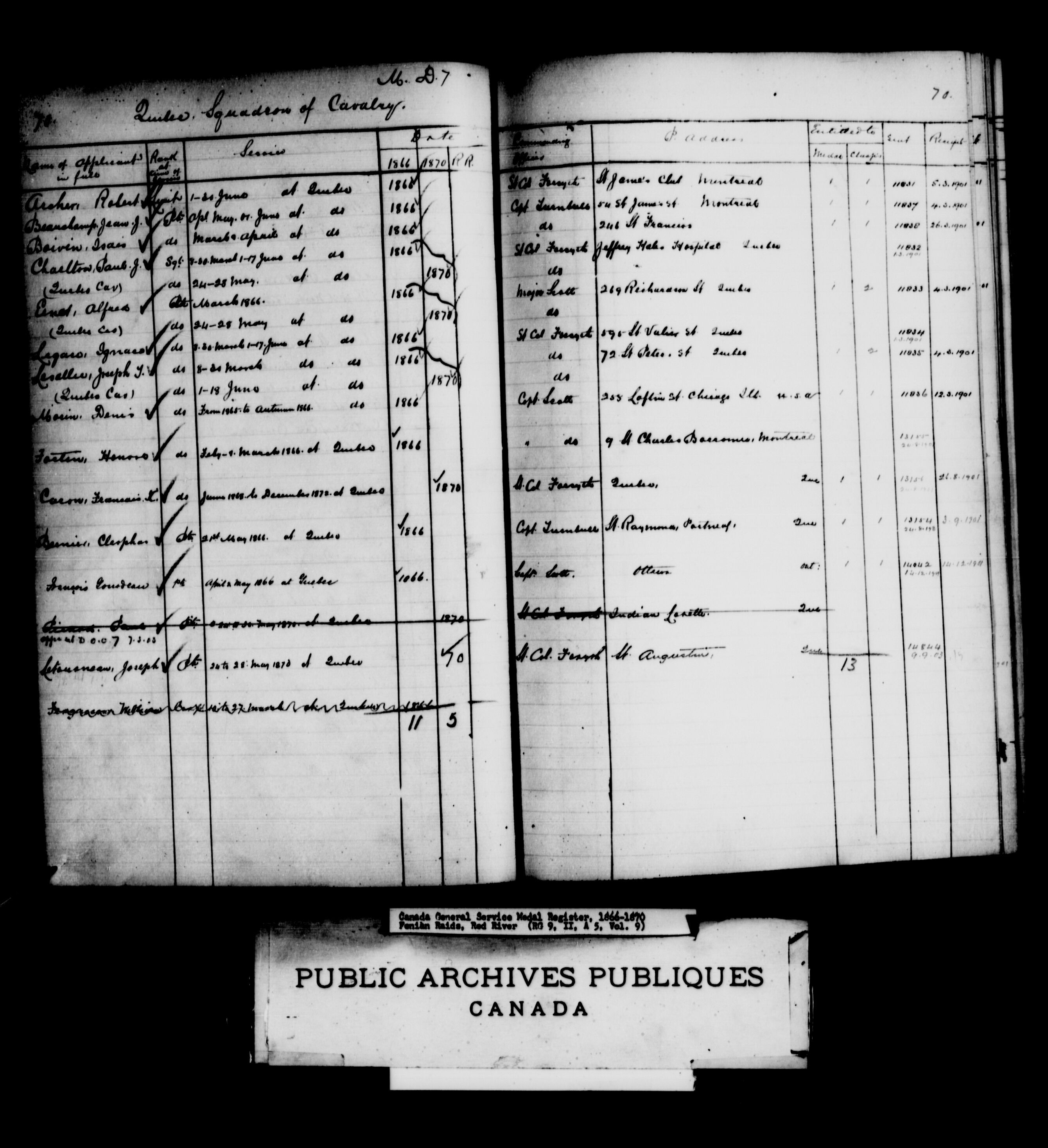 Canada General Service Medal Register, 1866-1870 : Fenian Raids, Red River, vol. 9-10