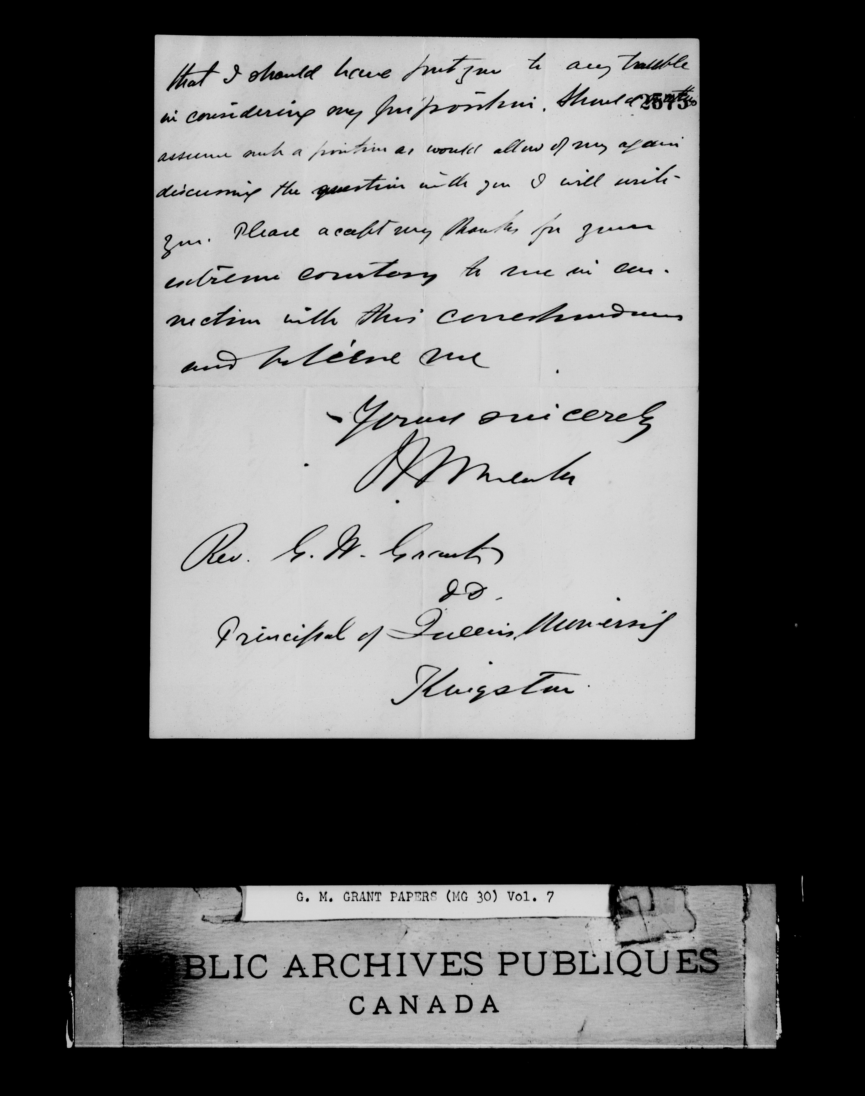 George M. Grant Papers - 1873