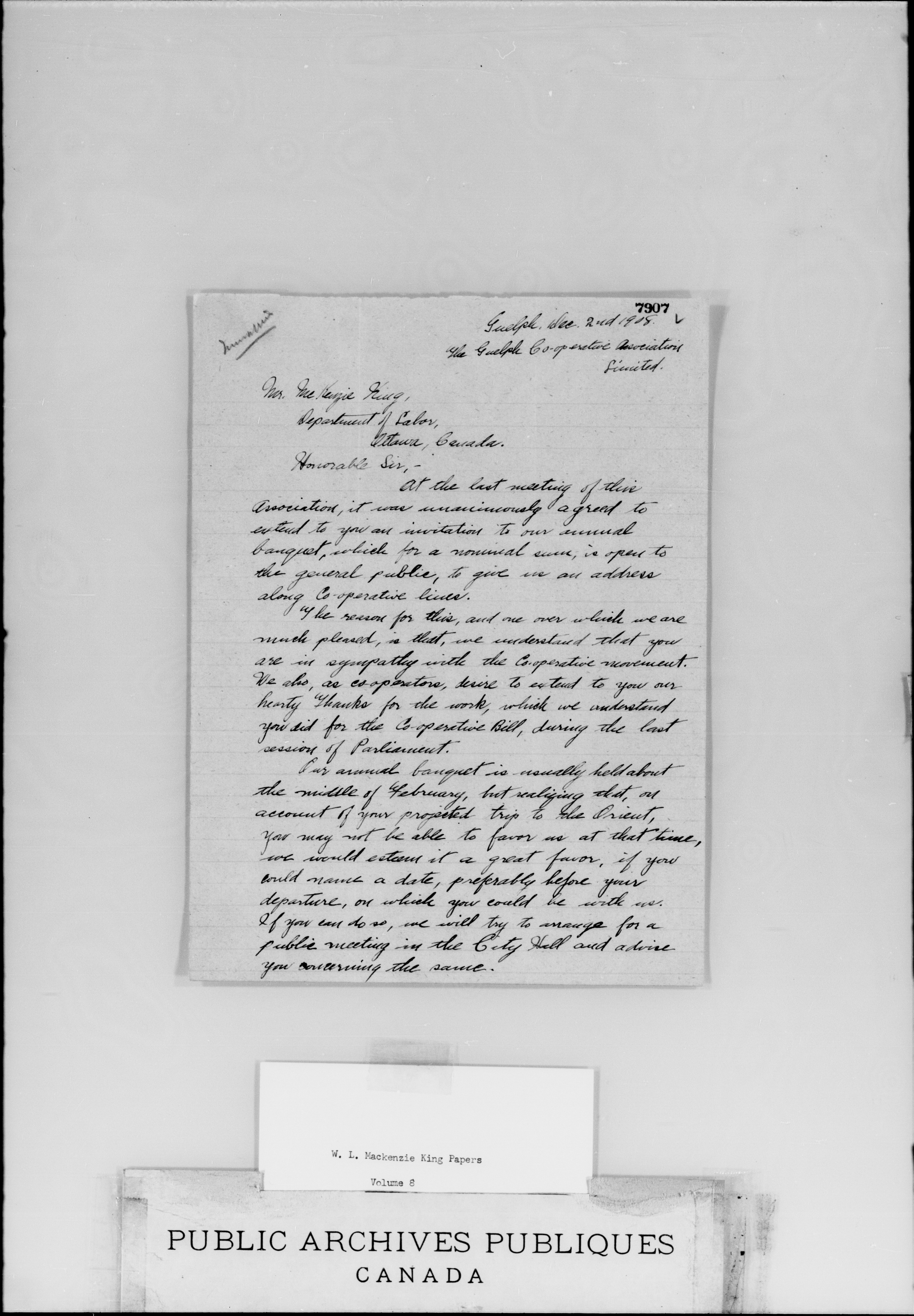 W.L. Mackenzie King correspondence, primary series - 1907