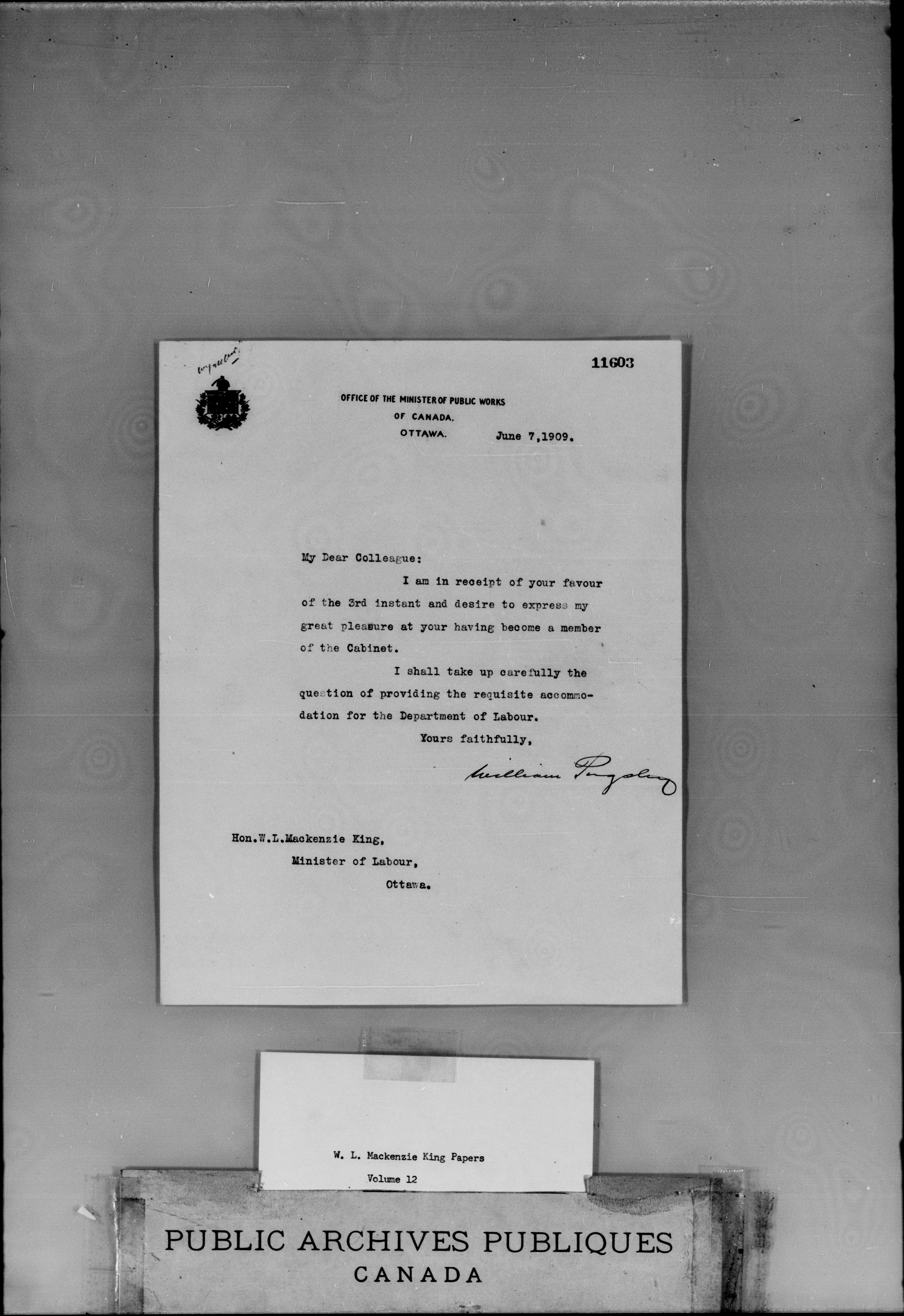 W.L. Mackenzie King correspondence, primary series - 1911