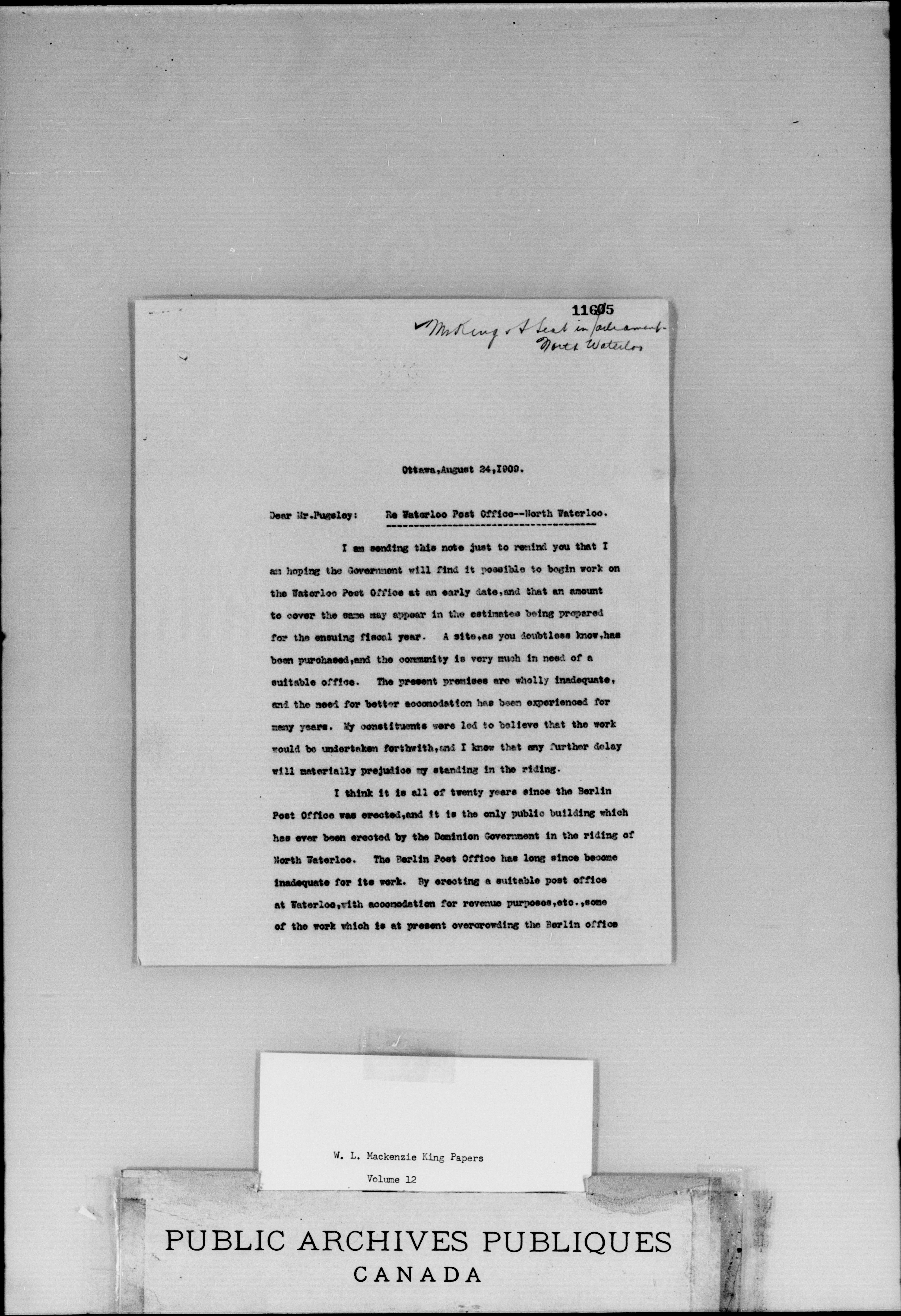 W.L. Mackenzie King correspondence, primary series - 1911