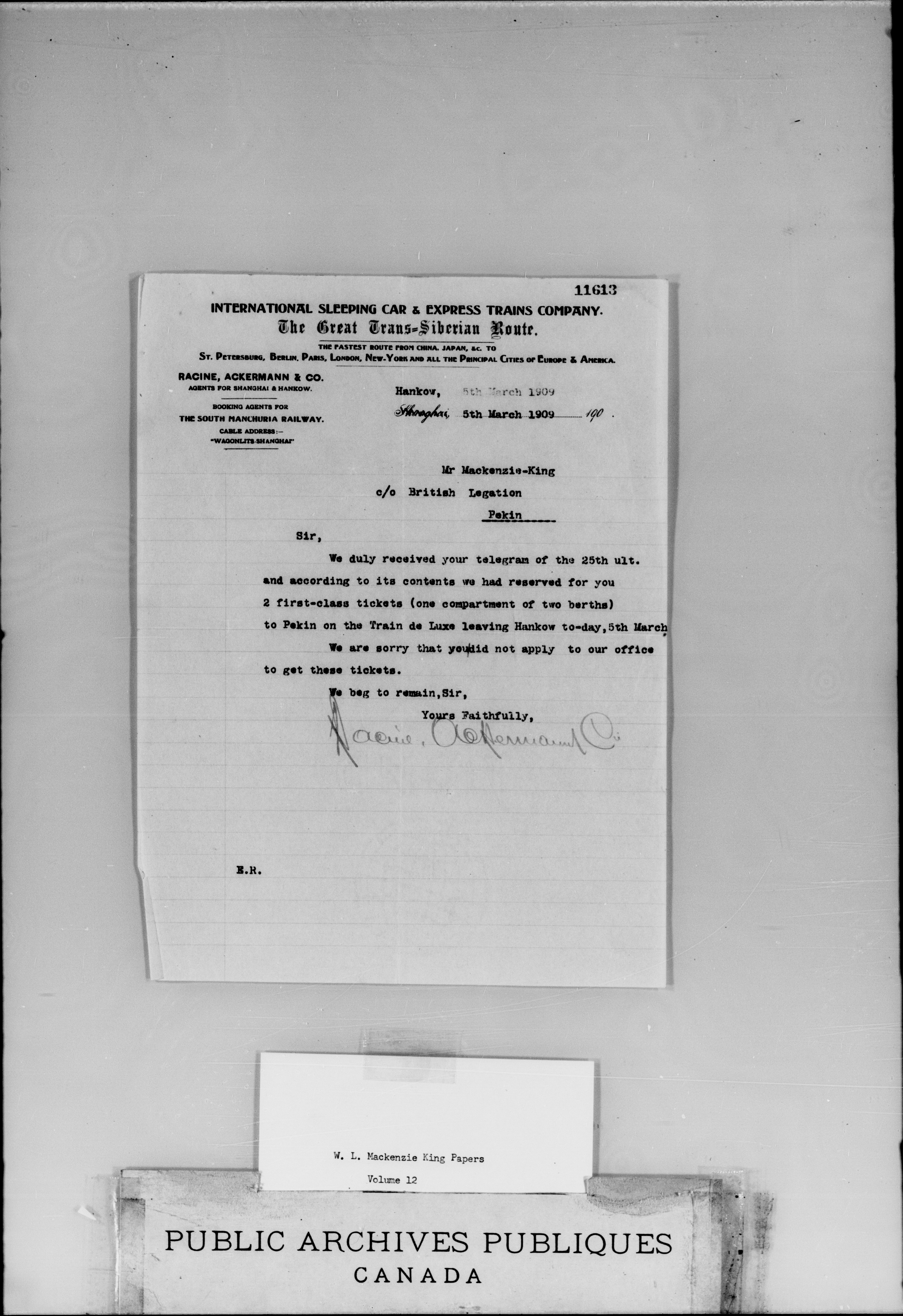 W.L. Mackenzie King correspondence, primary series - 1911