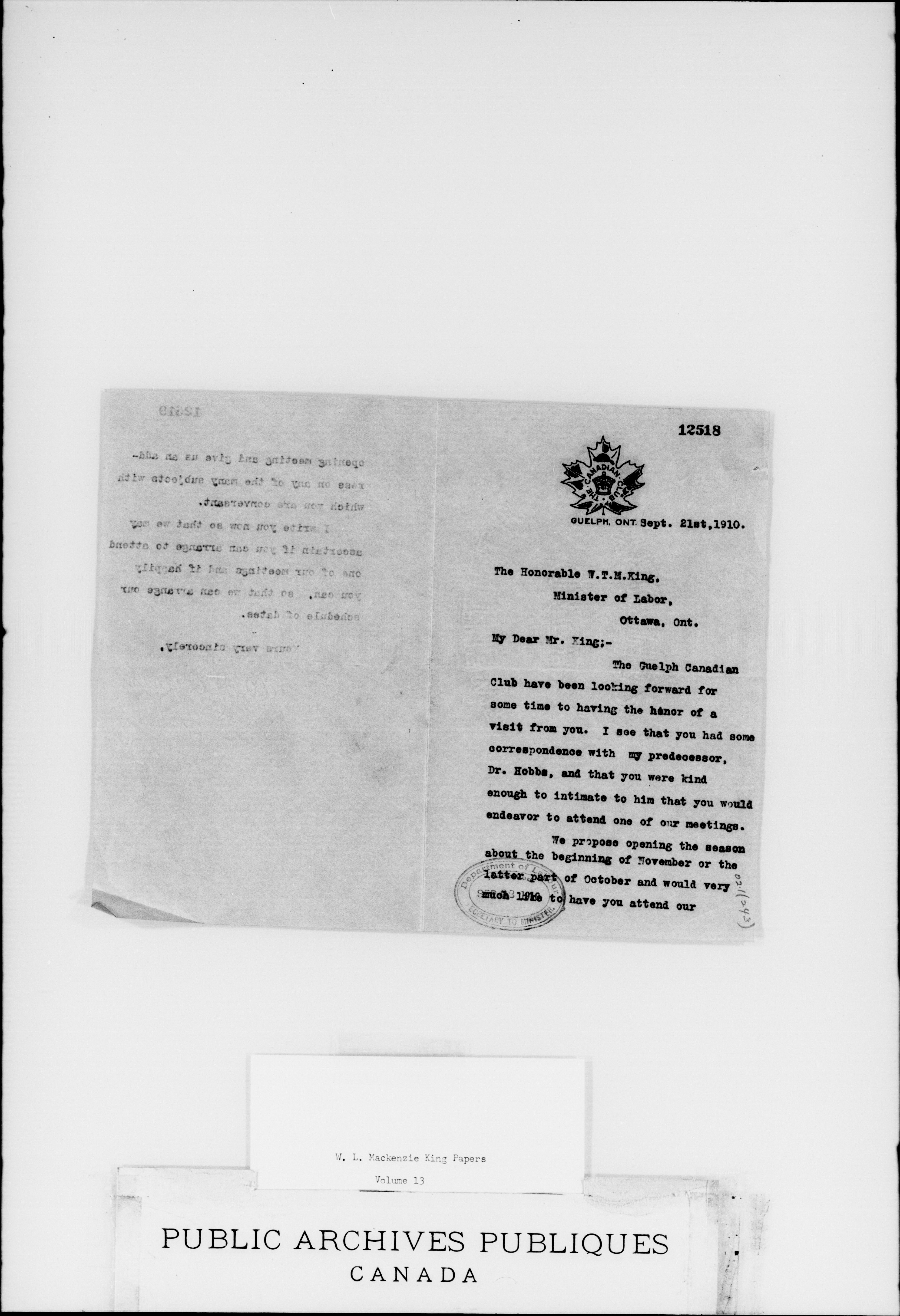 W.L. Mackenzie King correspondence, primary series - 1911