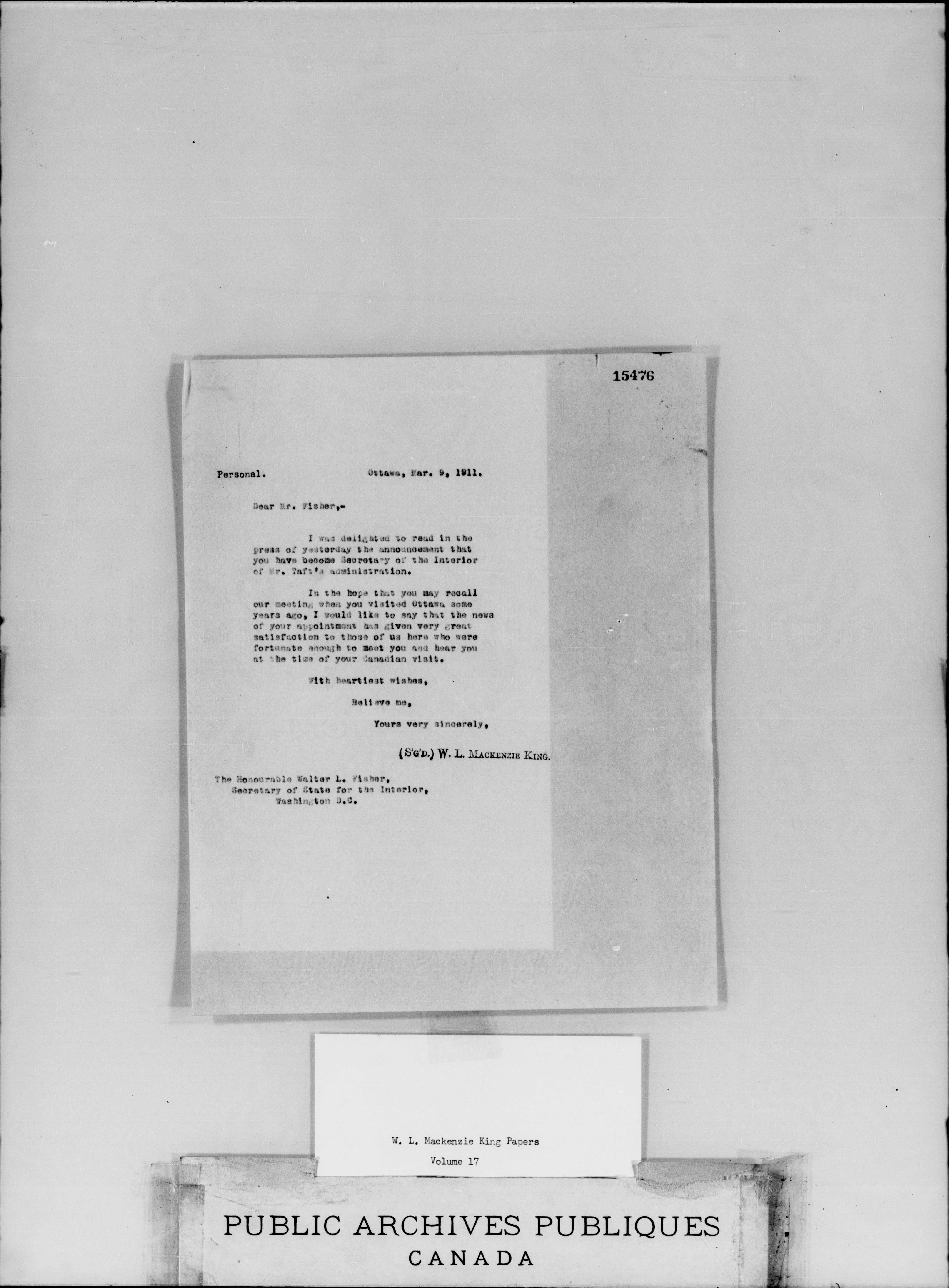W.L. Mackenzie King correspondence, primary series - 1914