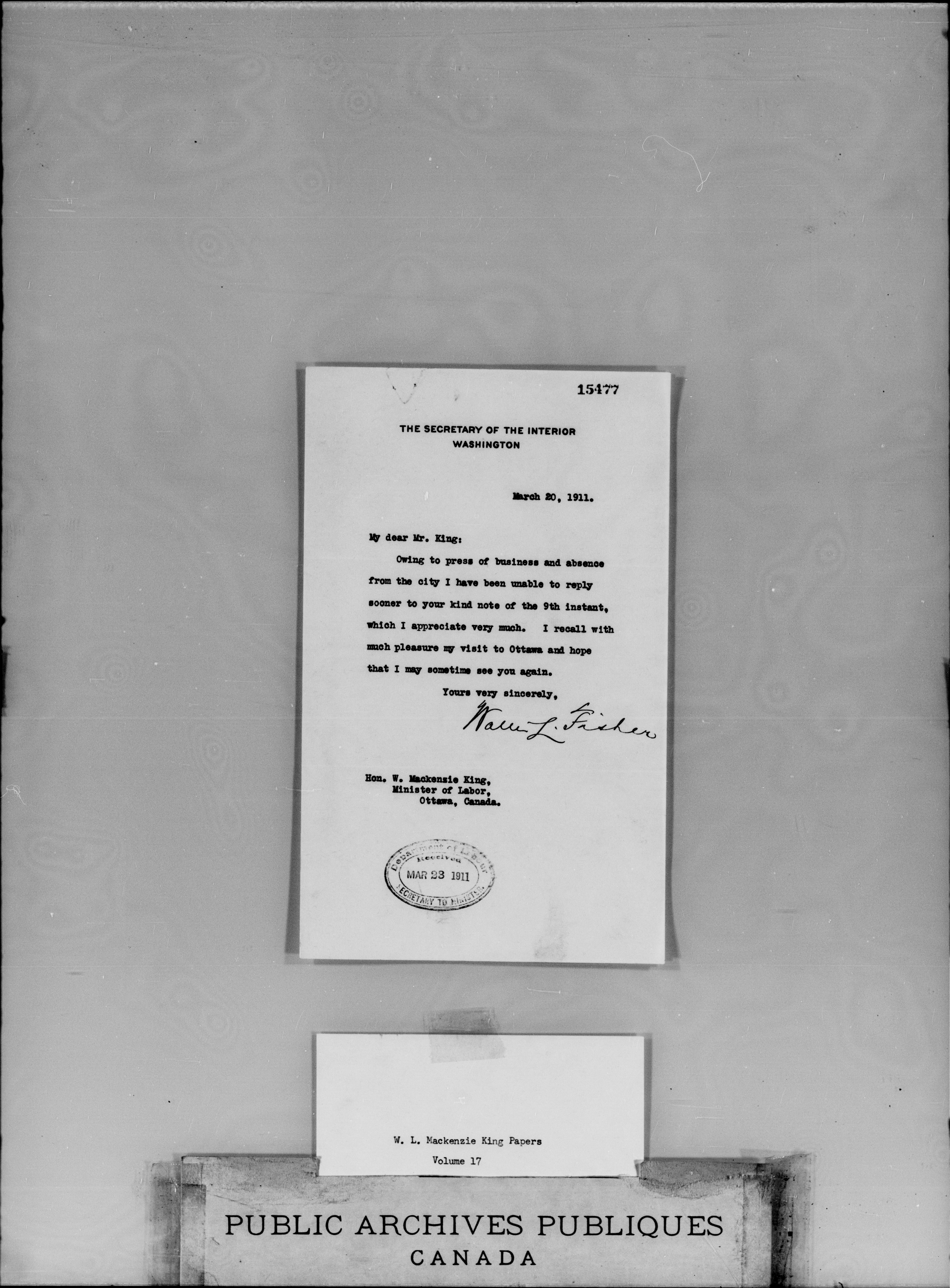W.L. Mackenzie King correspondence, primary series - 1914