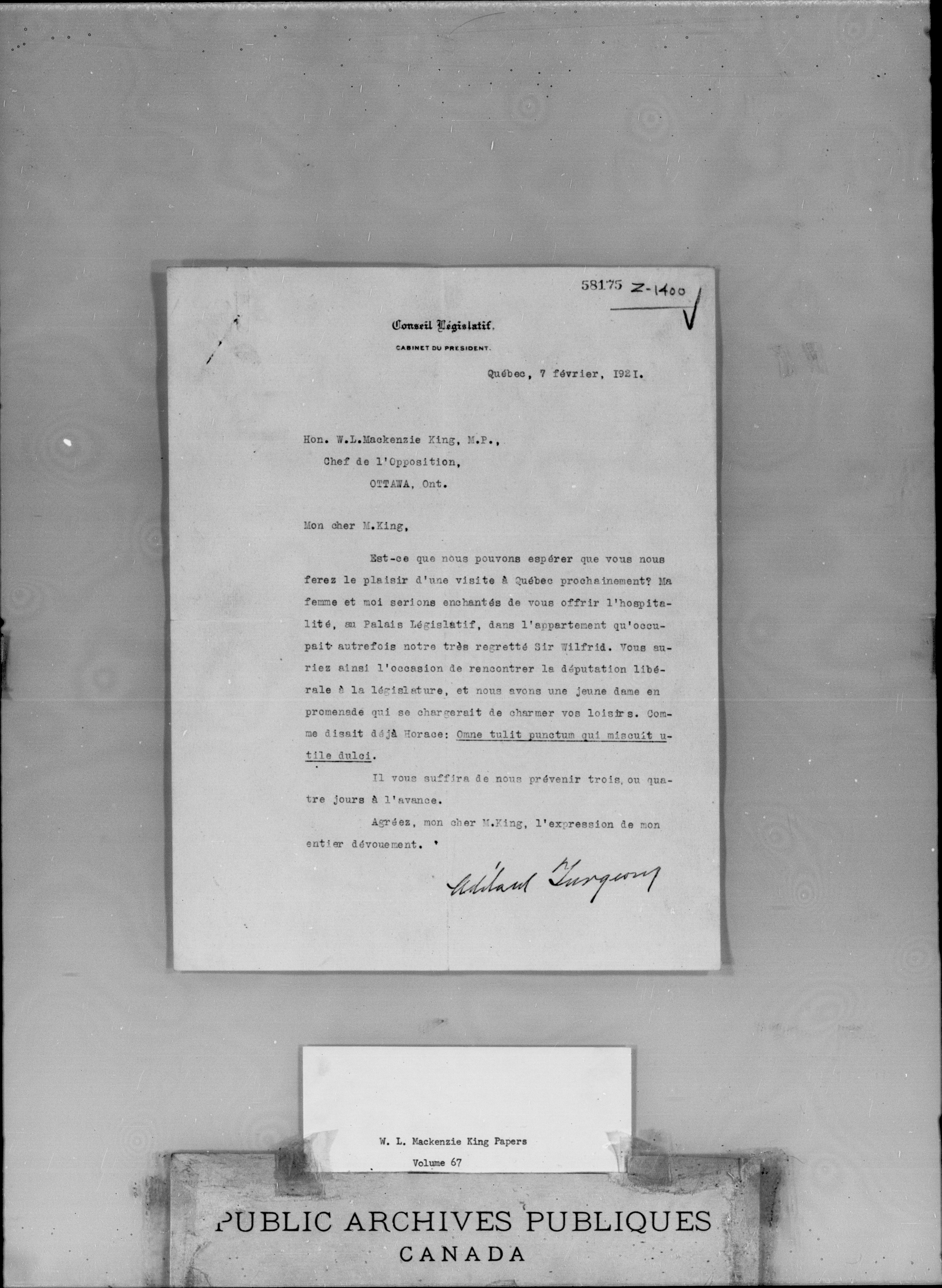 W.L. Mackenzie King correspondence, primary series - 1952