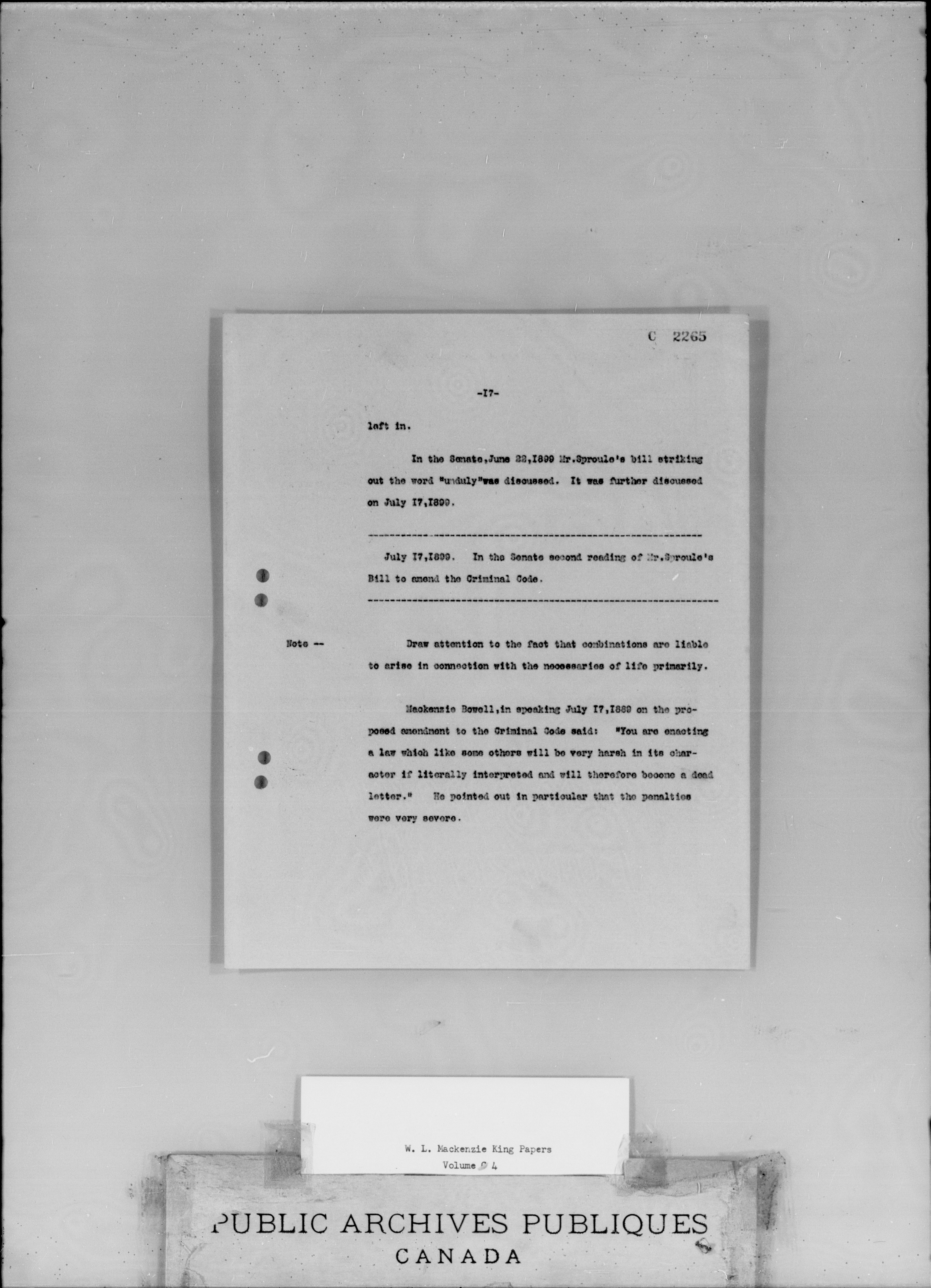 W.L. Mackenzie King Memoranda and NotesInvestigation Act - 1954
