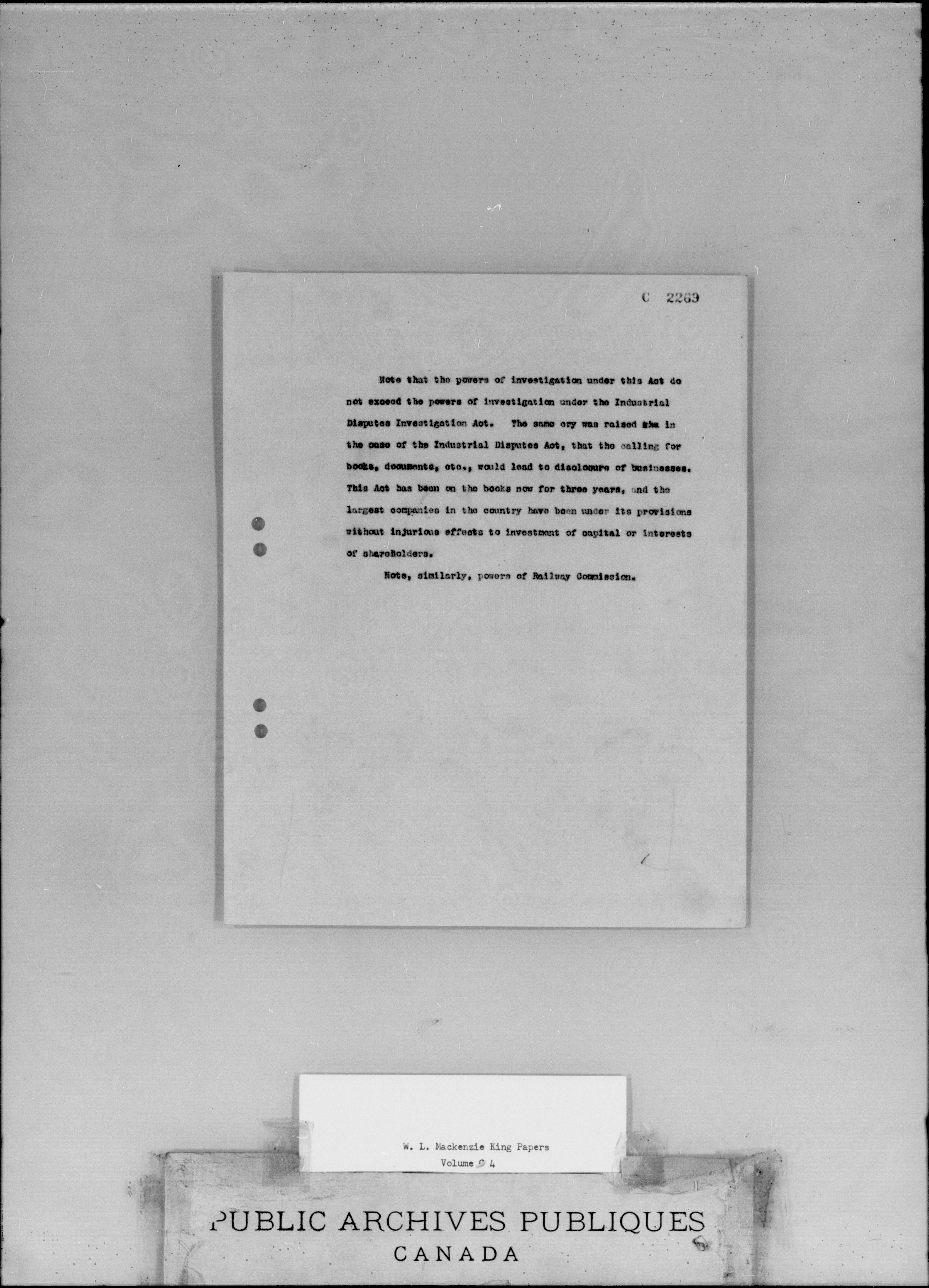 W.L. Mackenzie King Memoranda and NotesInvestigation Act - 1954