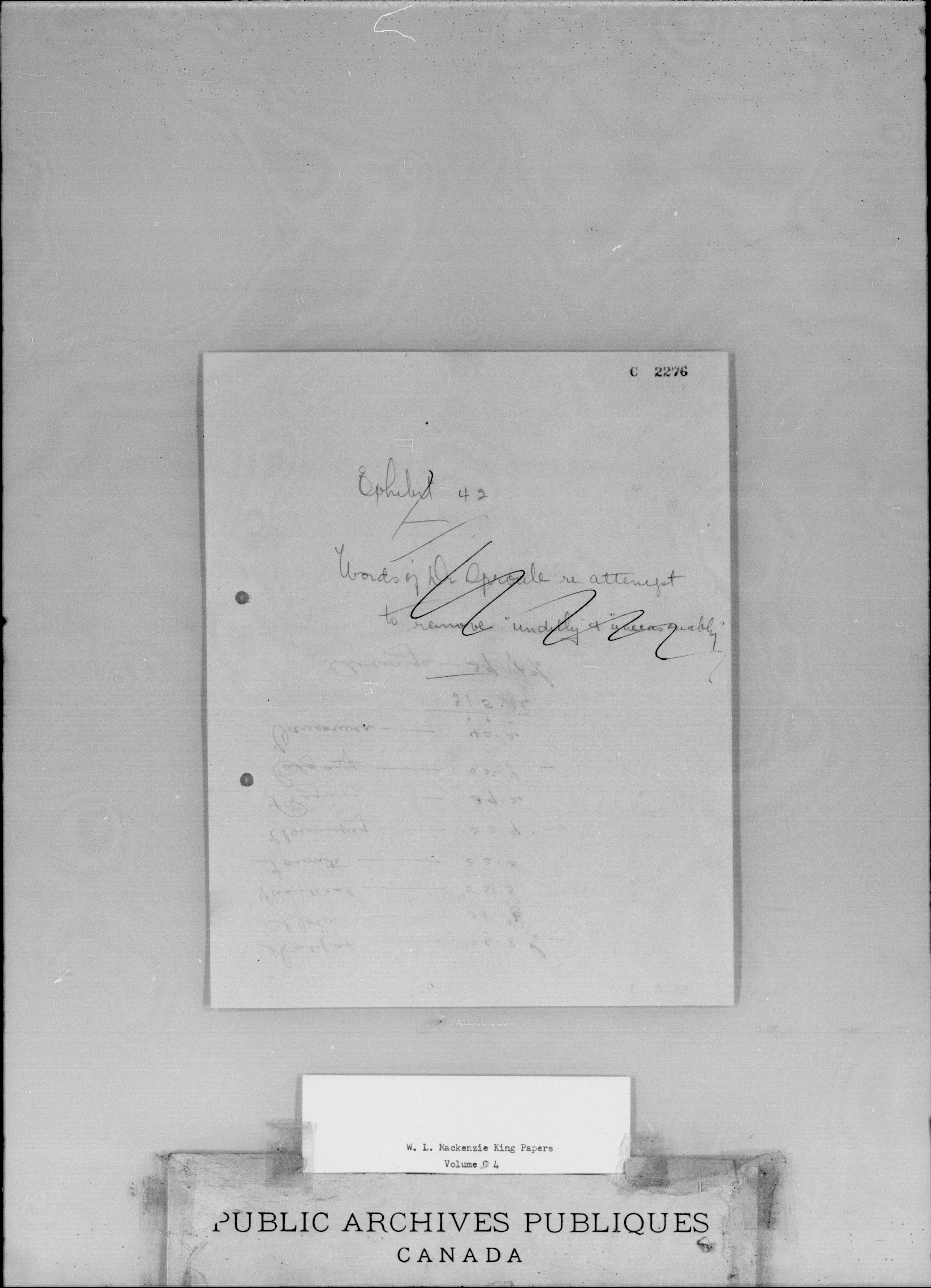 W.L. Mackenzie King Memoranda and NotesInvestigation Act - 1954