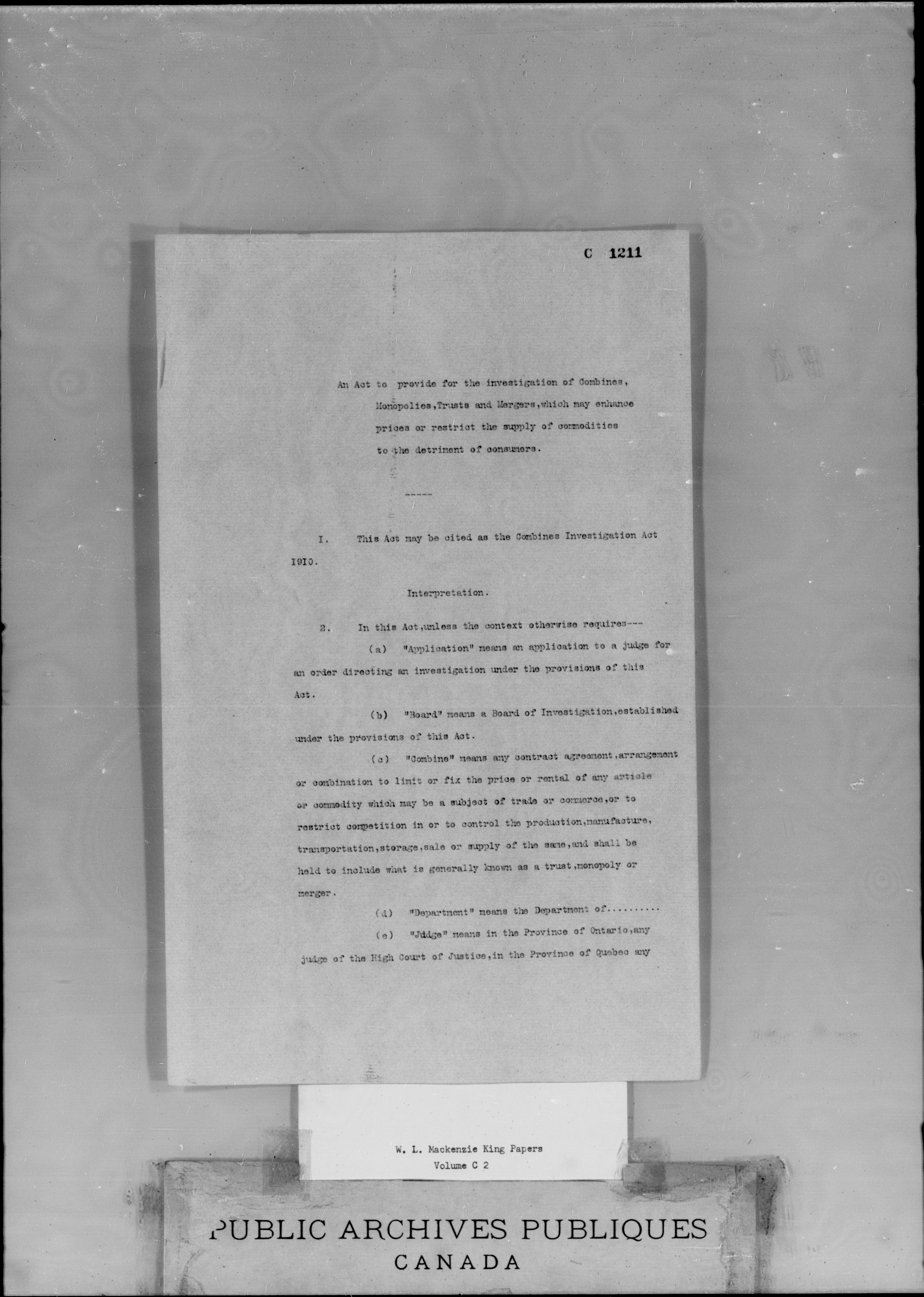 W.L. Mackenzie King Memoranda and NotesInvestigation Act - 1954