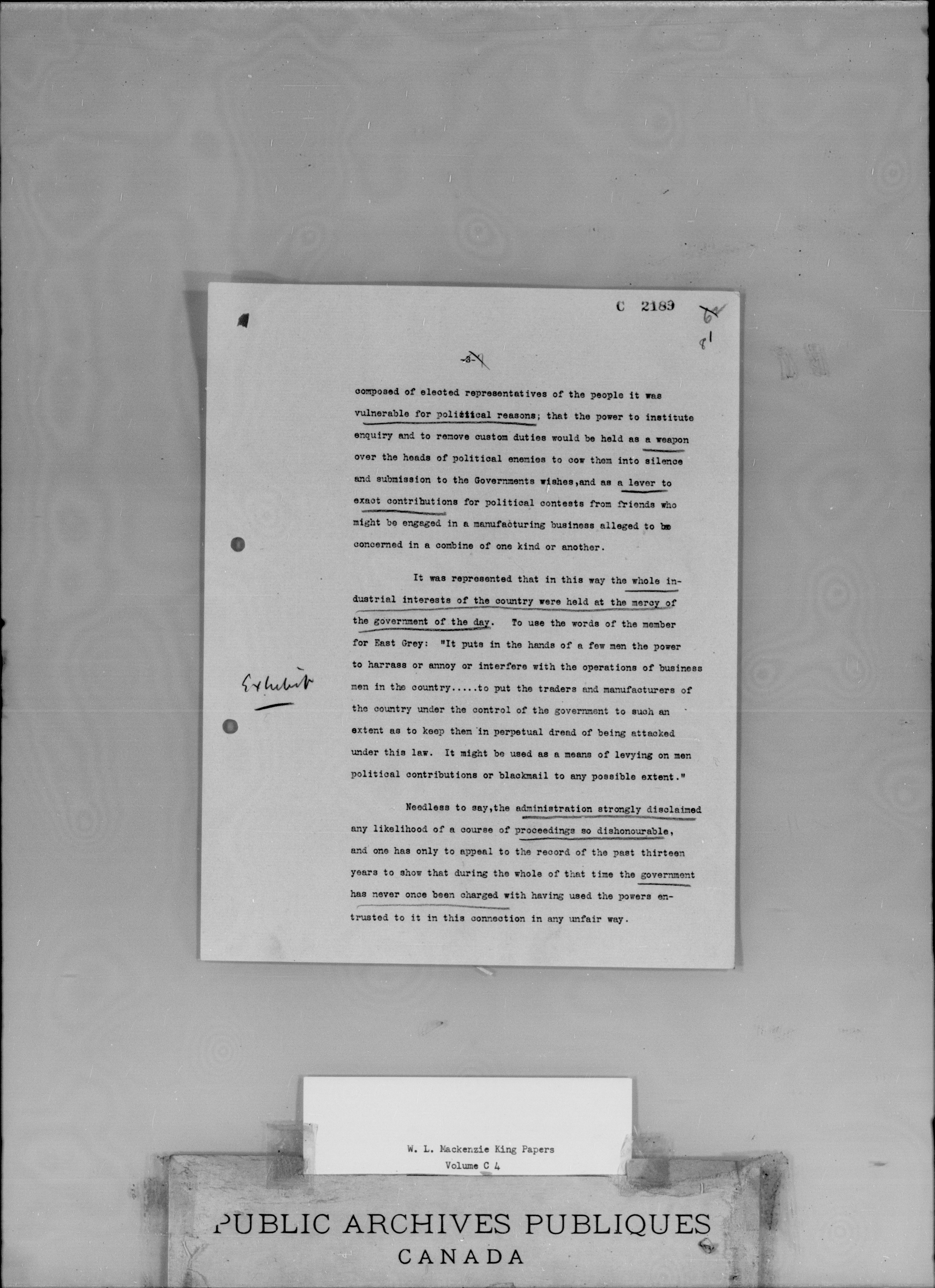 W.L. Mackenzie King Memoranda and NotesInvestigation Act - 1954