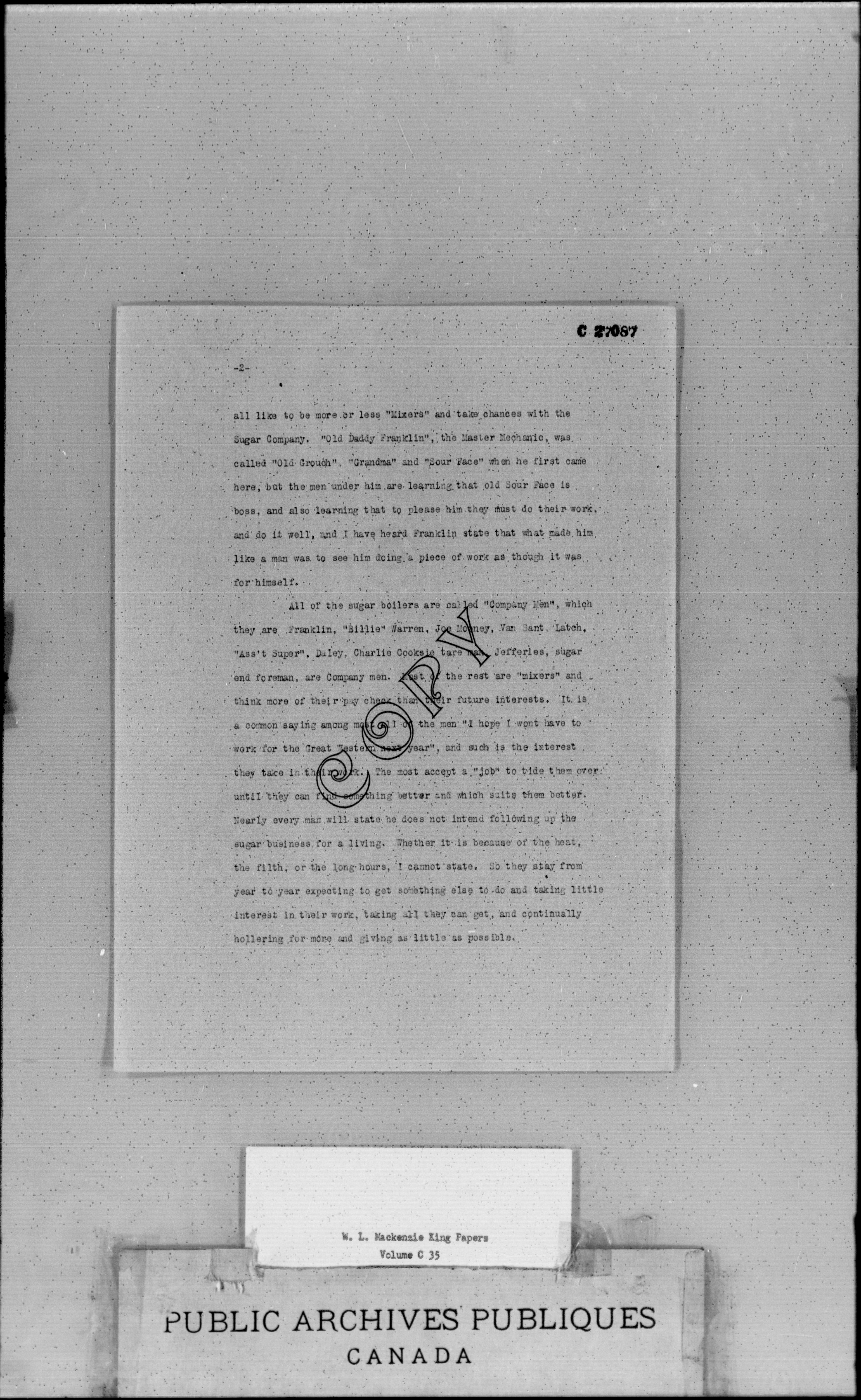 W.L. Mackenzie King Memoranda and Notes - 1974