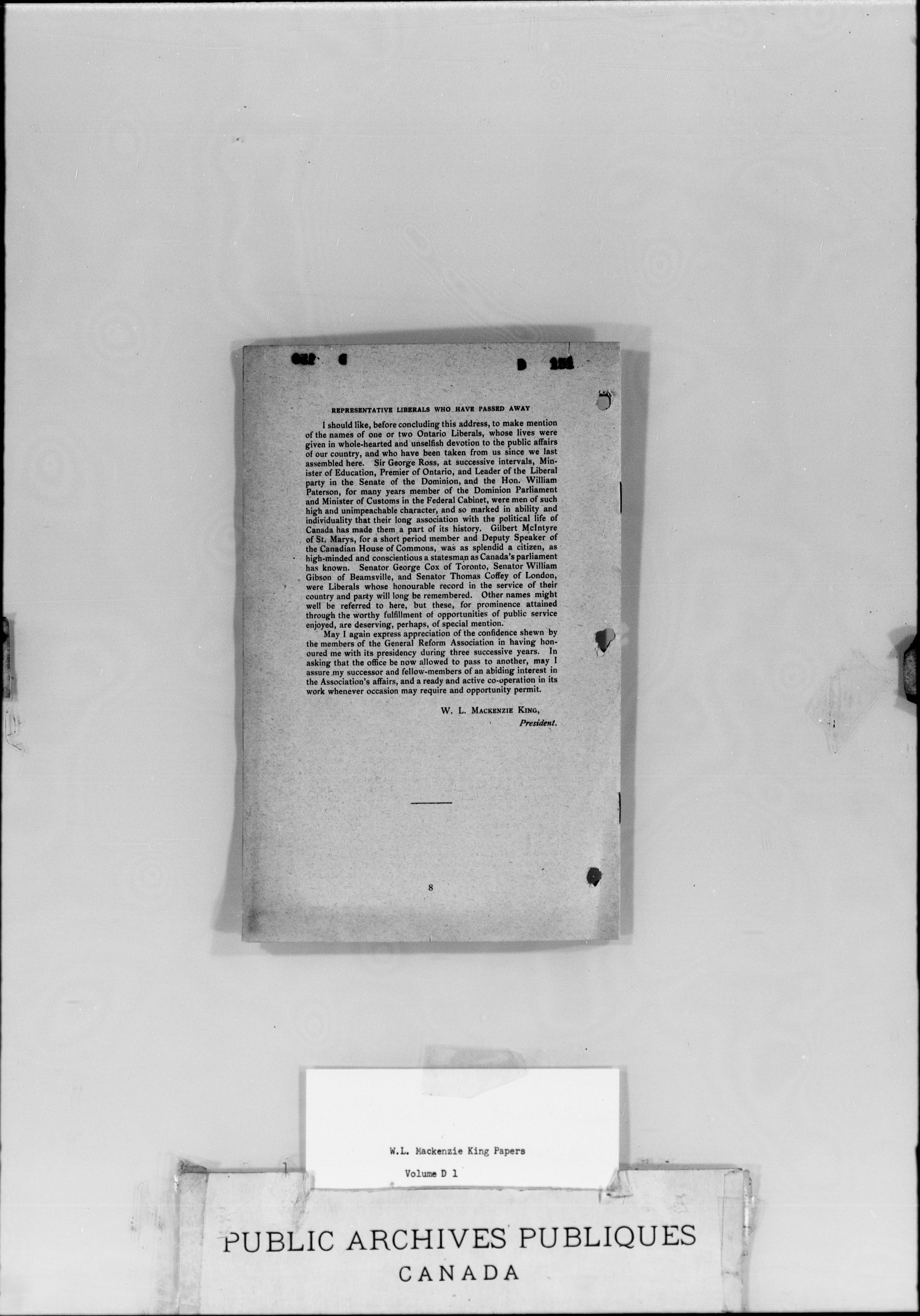 William Lyon Mackenzie King : Speeches (J5) - 1984