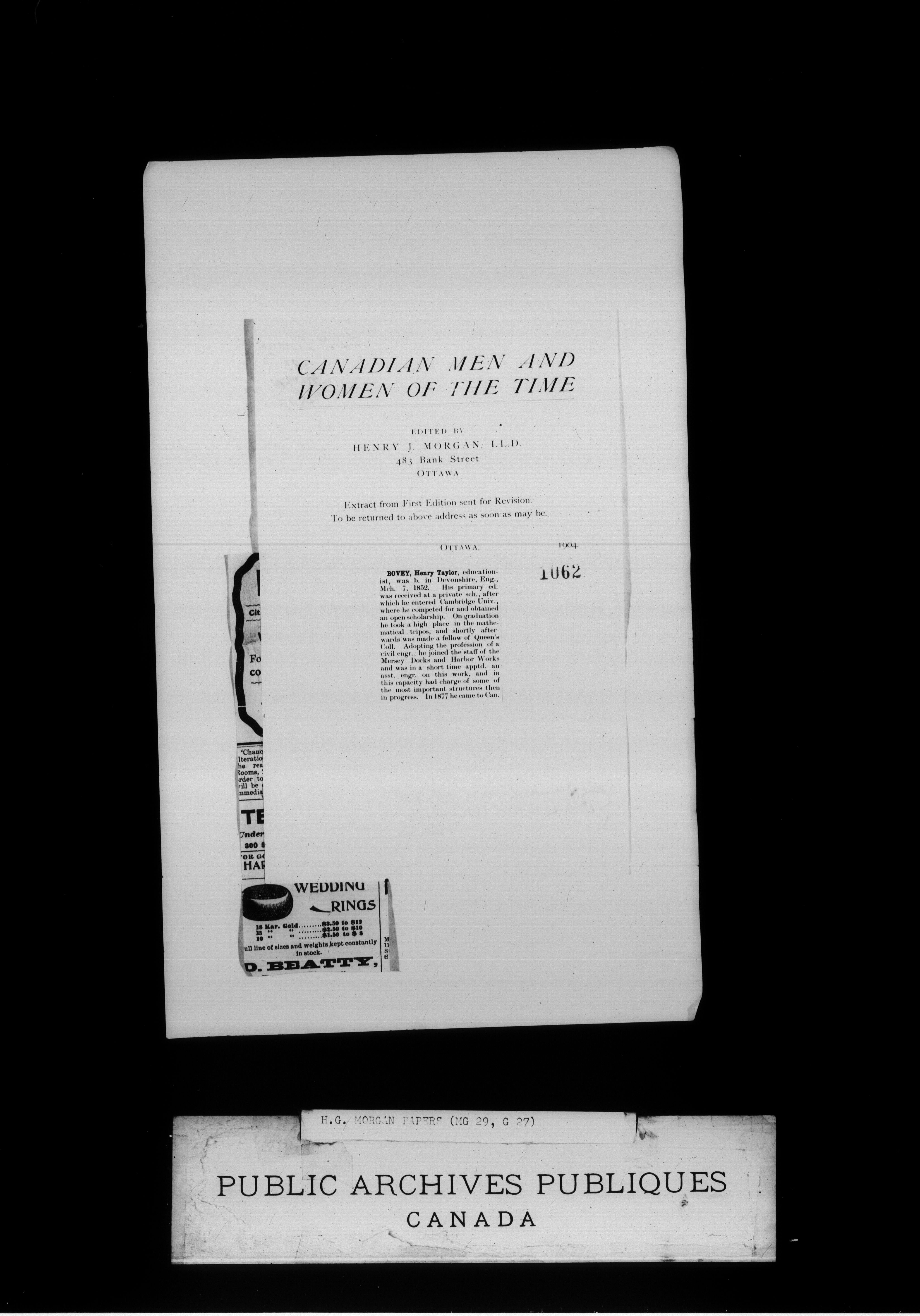 Henry James Morgan Papers - 1990