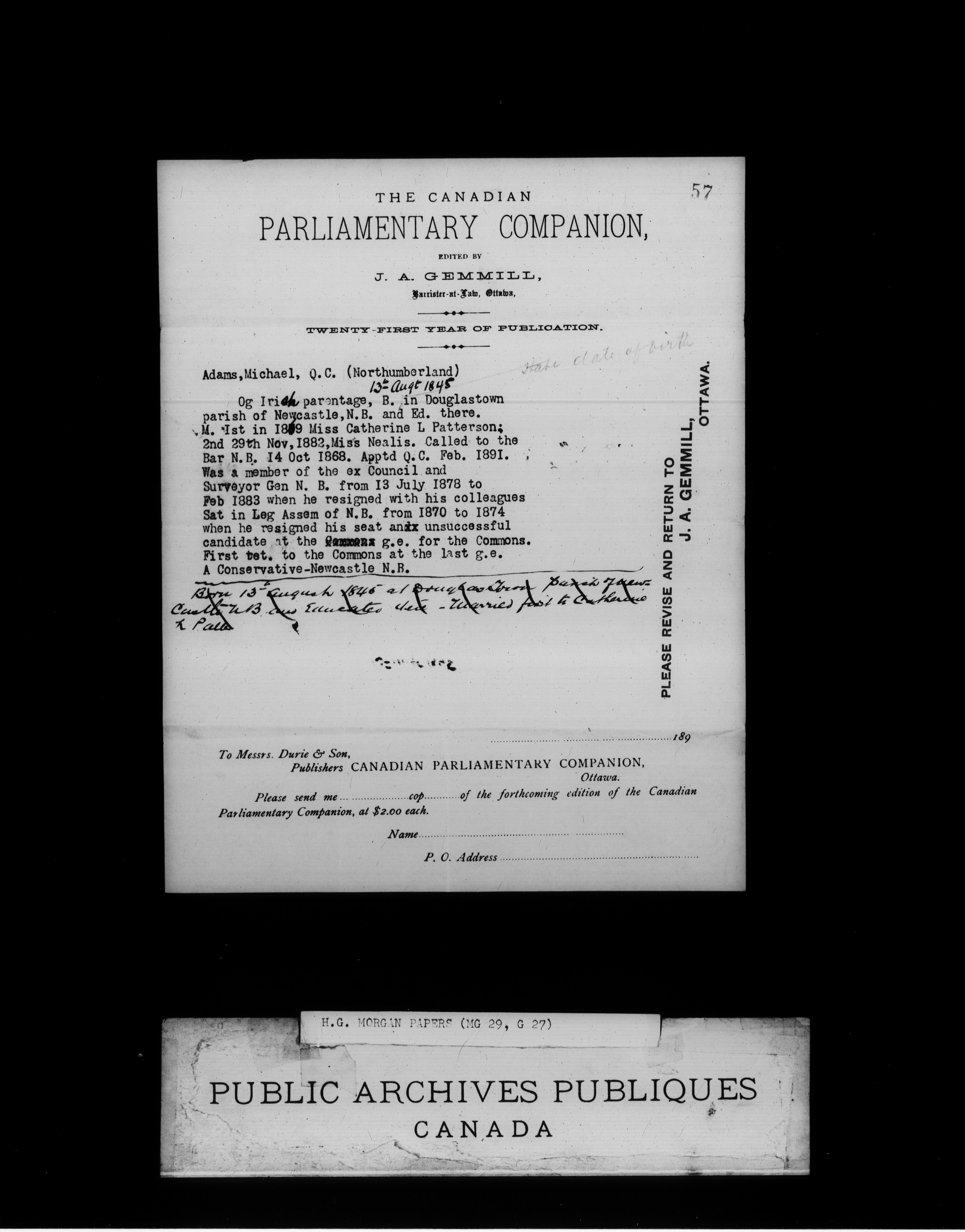 Henry James Morgan Papers - 1990