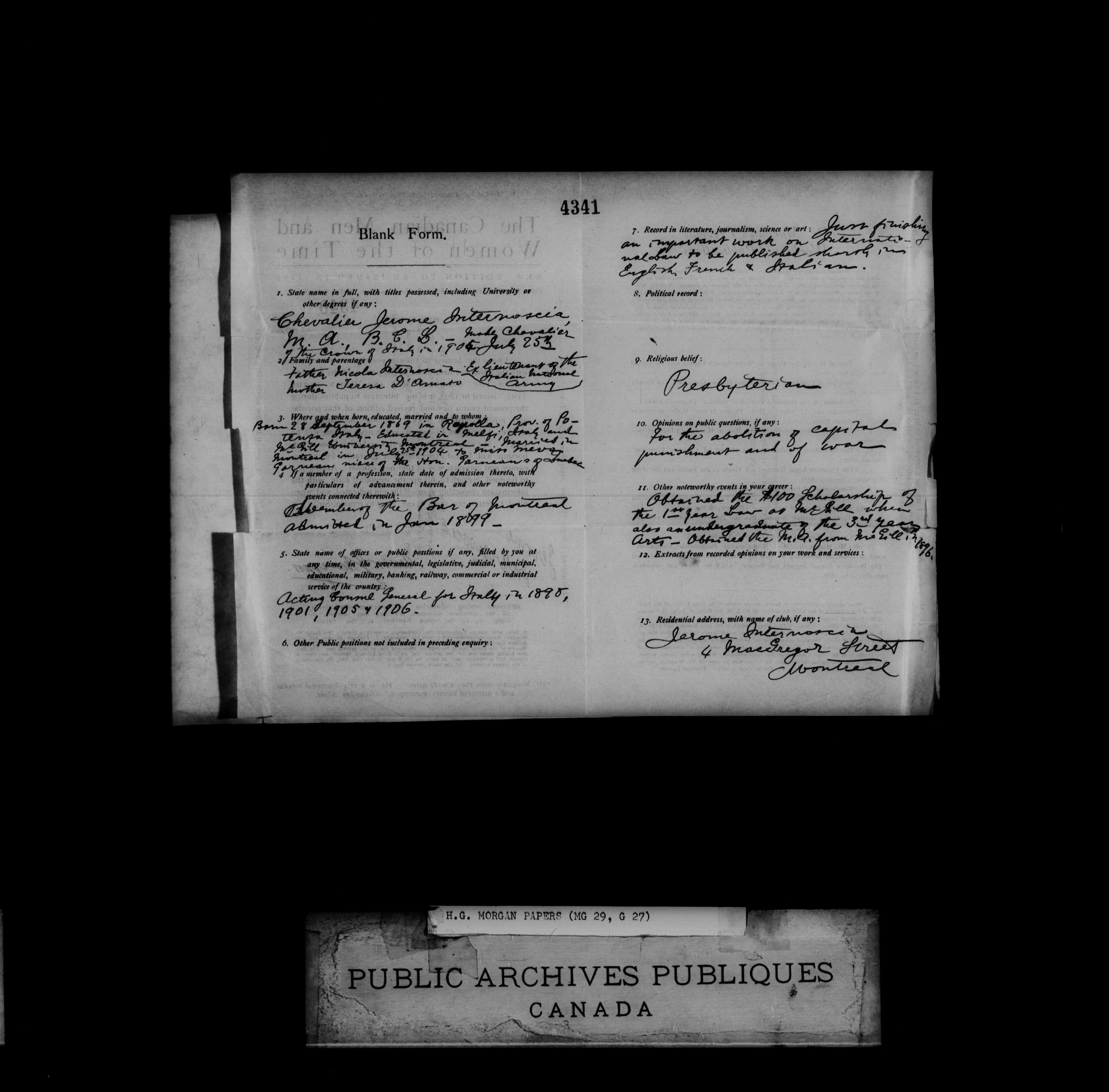 Henry James Morgan Papers - 1994