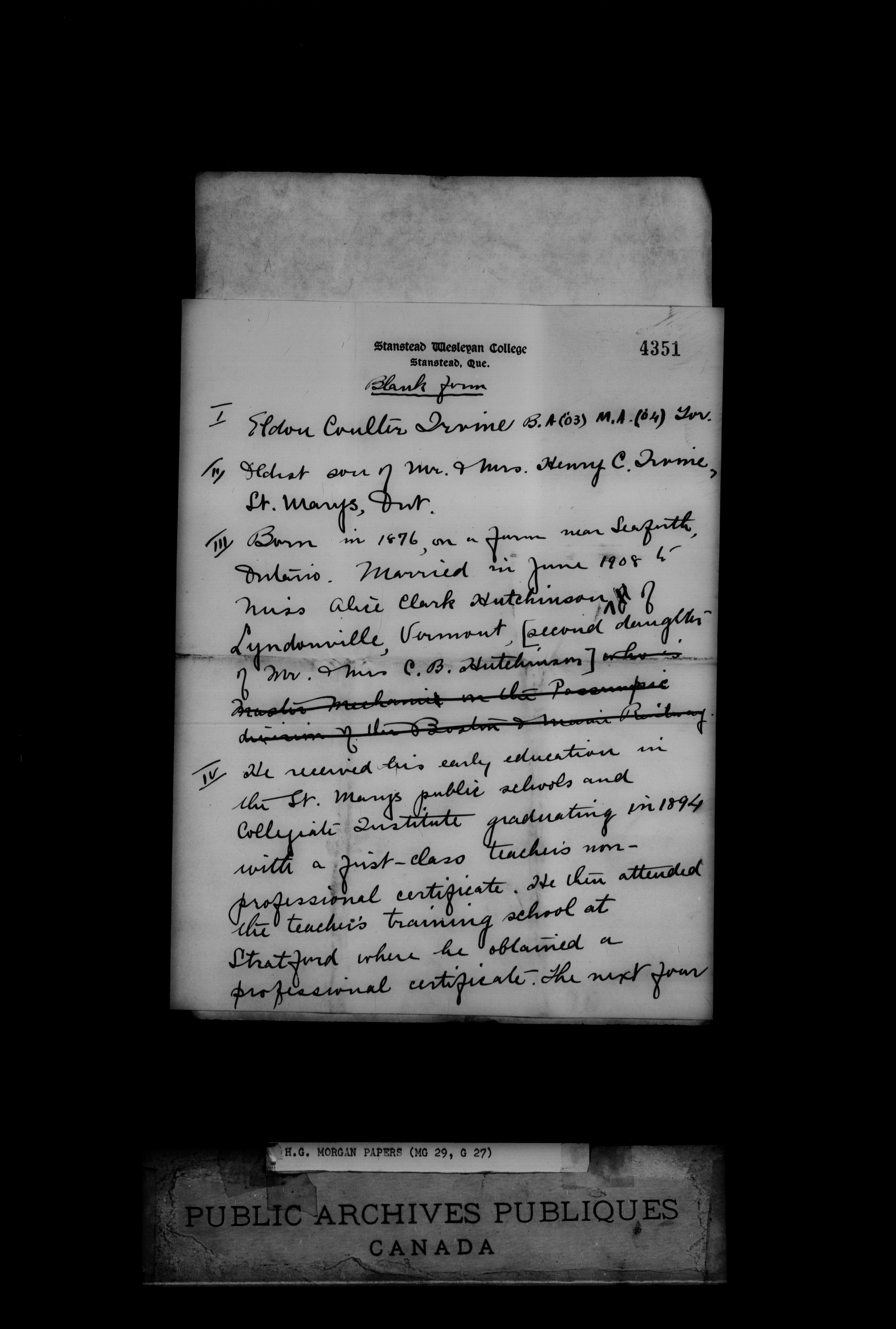Henry James Morgan Papers - 1994