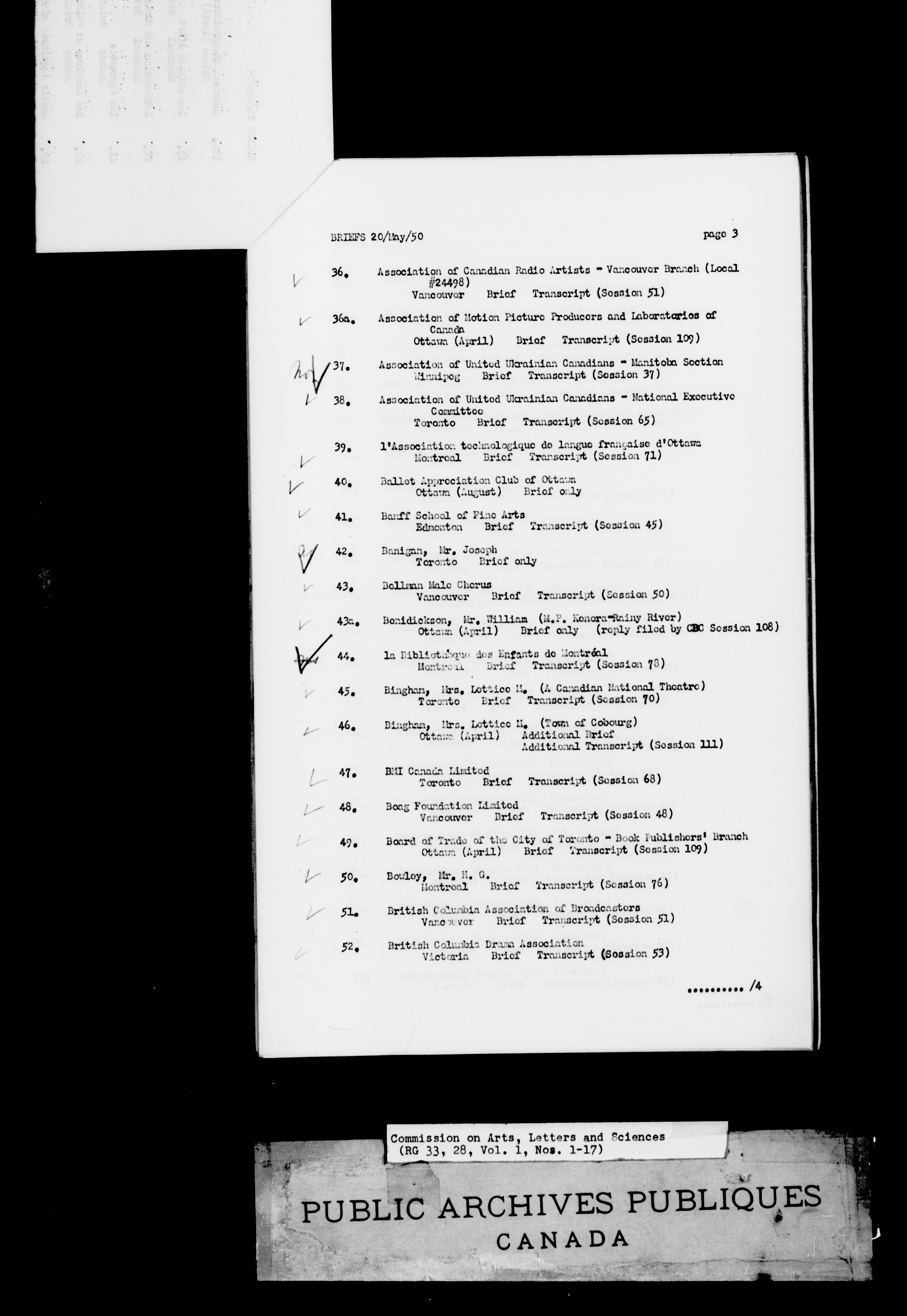 Commission on Arts, Letters and Sciences : Briefs received and indexes - 1998