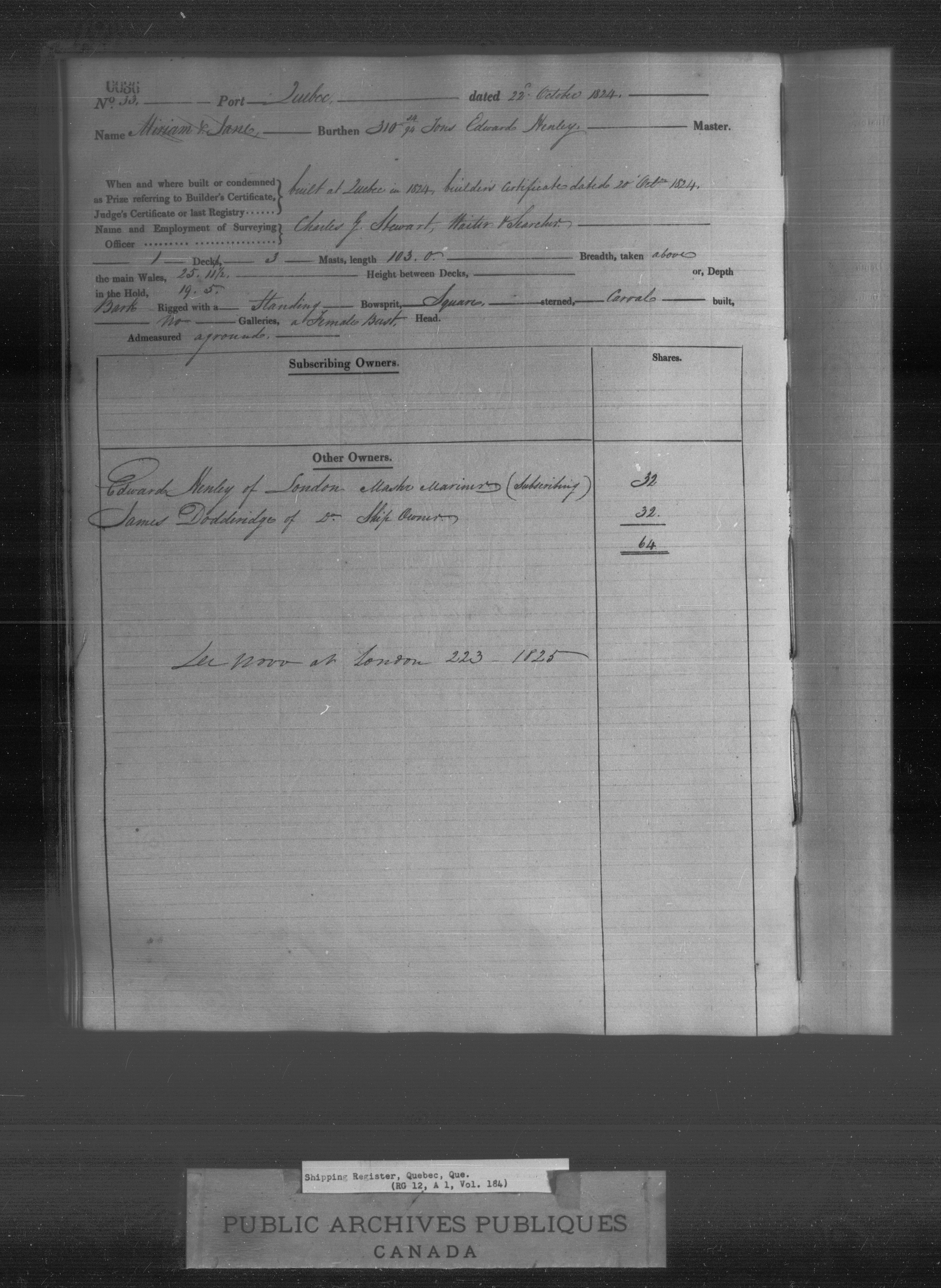 Windsor, Nova Scotia Registrar of Shipping - 2059