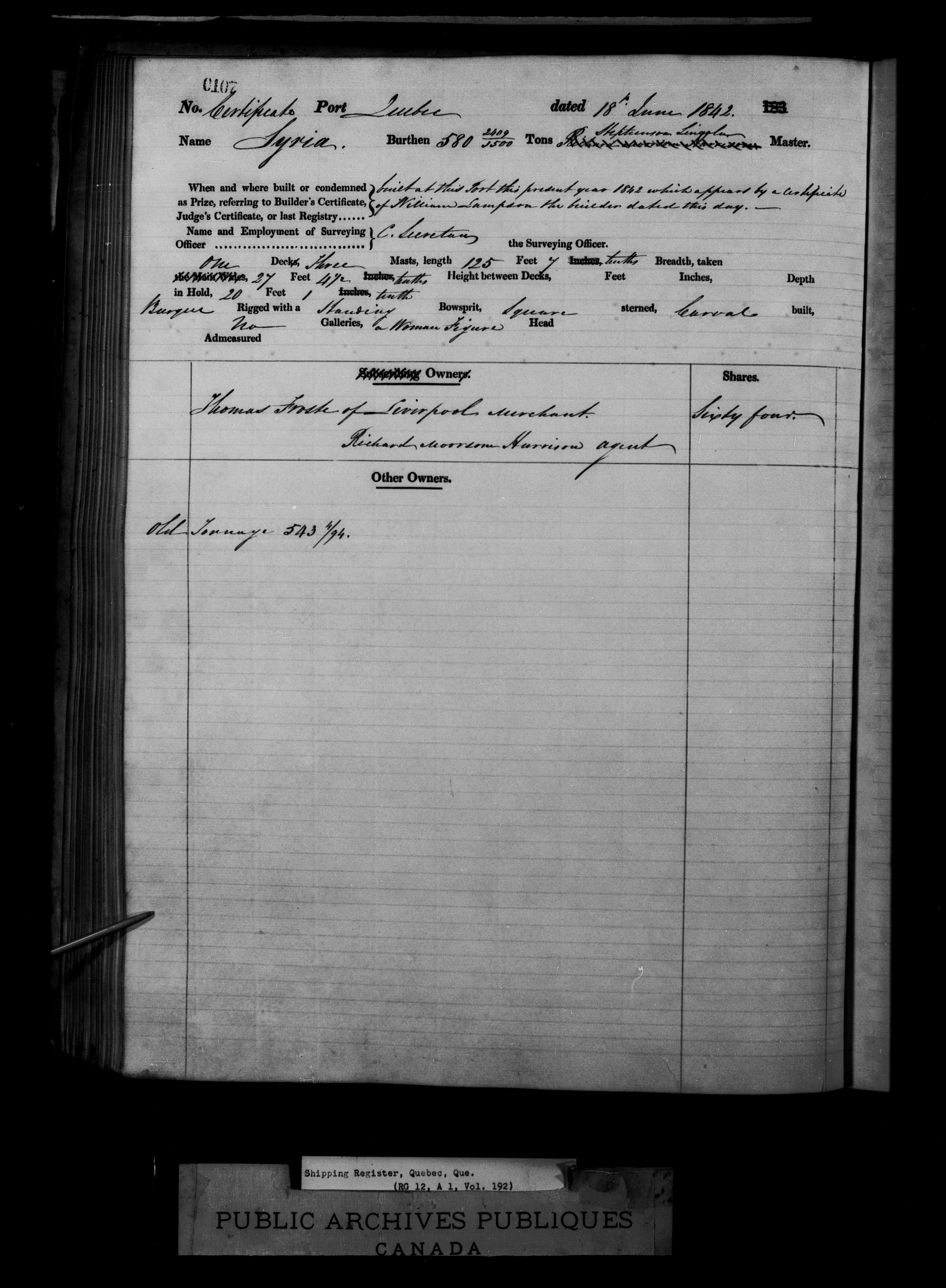 Quebec City [Quebec] Registrar of Shipping - 2061