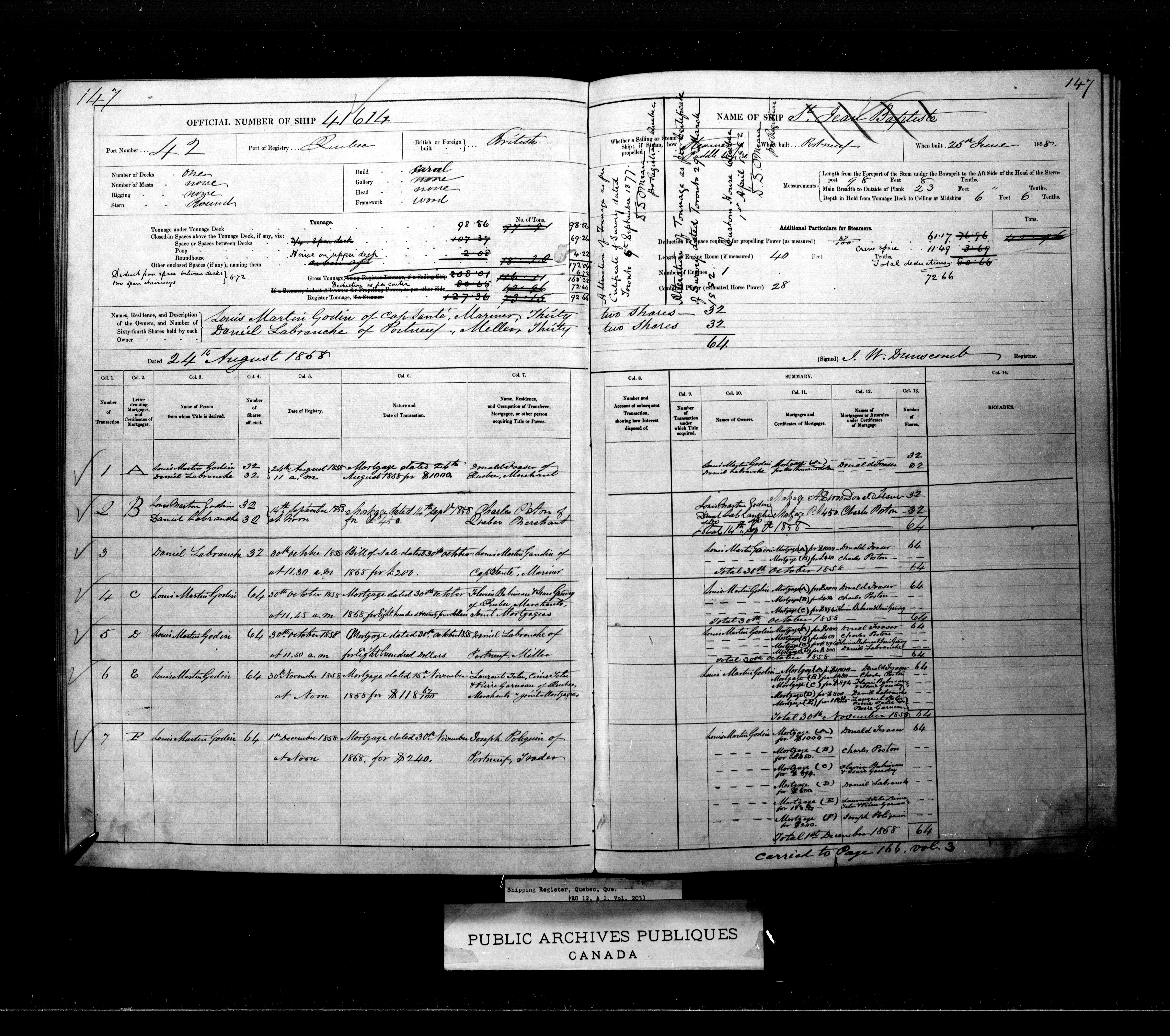 Quebec City [Quebec] Registrar of Shipping - 2064
