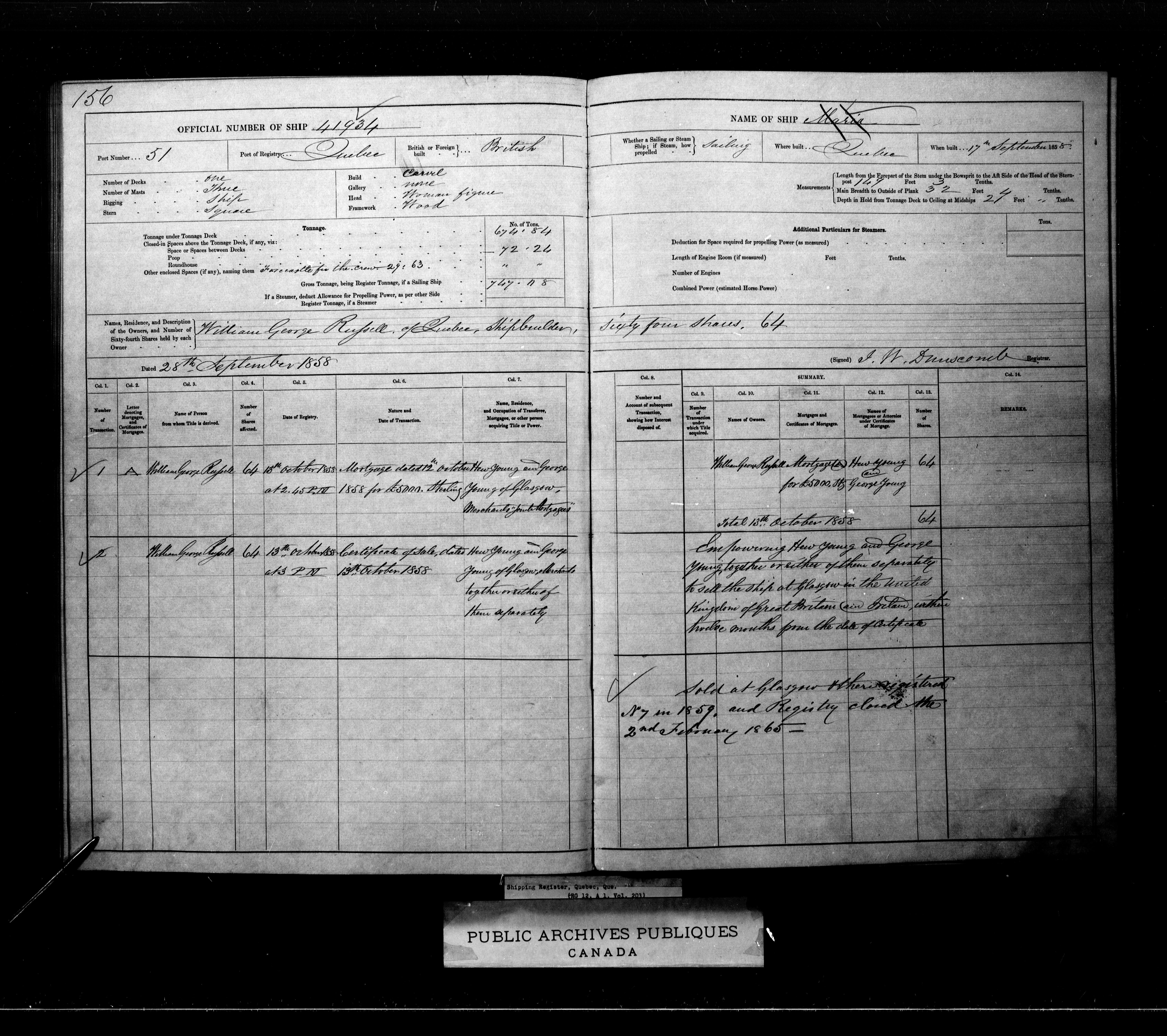 Quebec City [Quebec] Registrar of Shipping - 2064