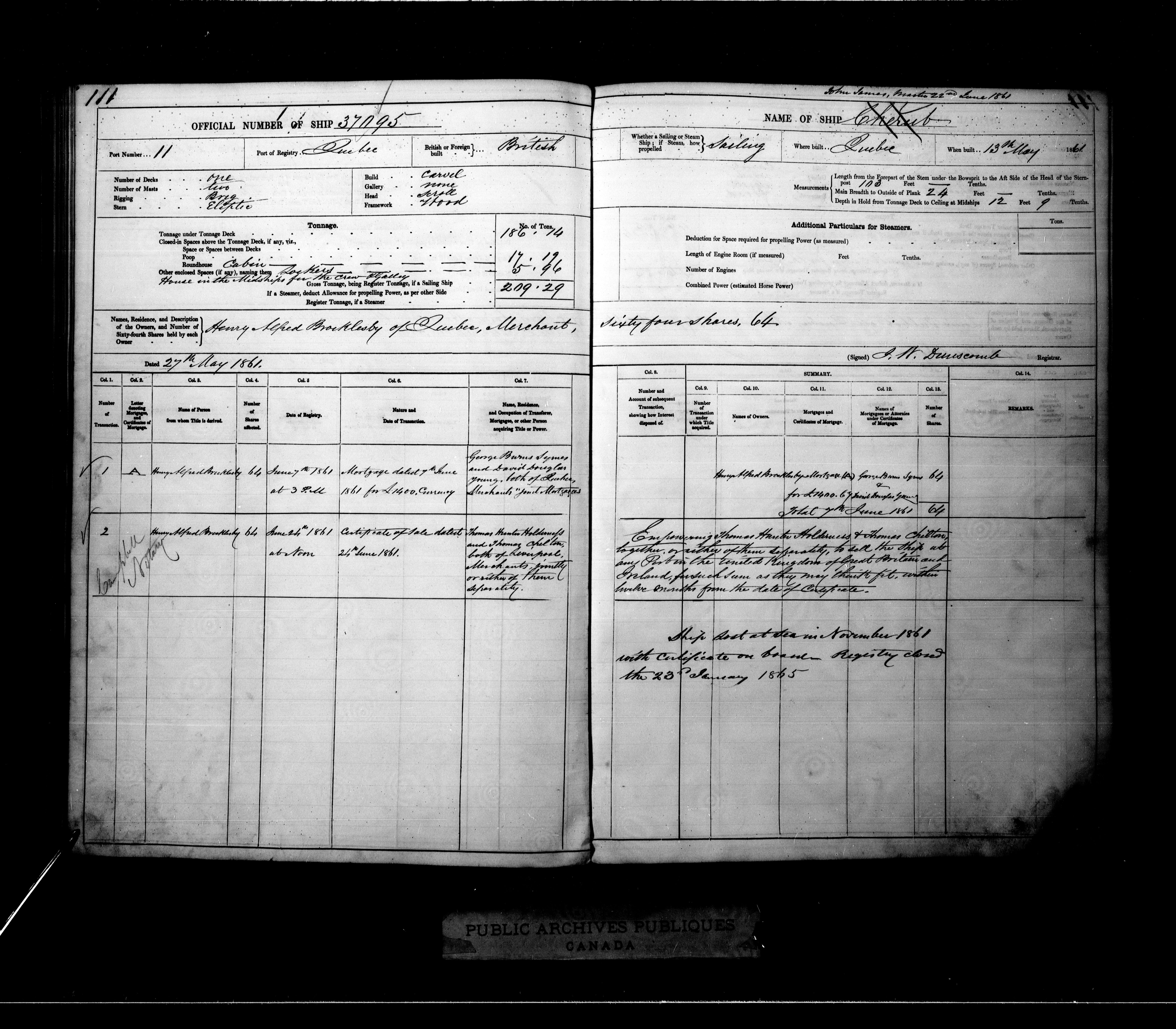 Quebec City [Quebec] Registrar of Shipping - 2065