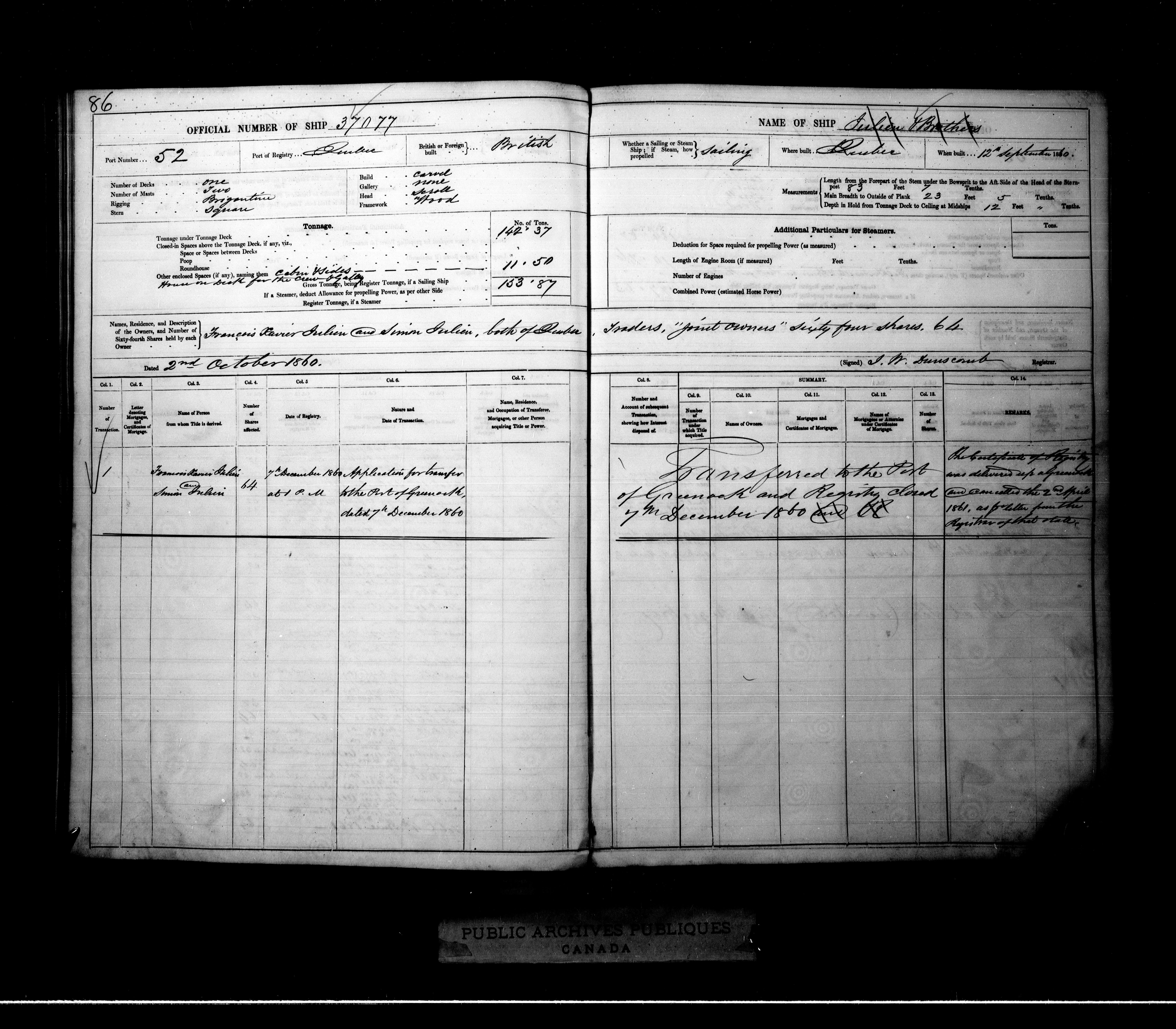 Quebec City [Quebec] Registrar of Shipping - 2065