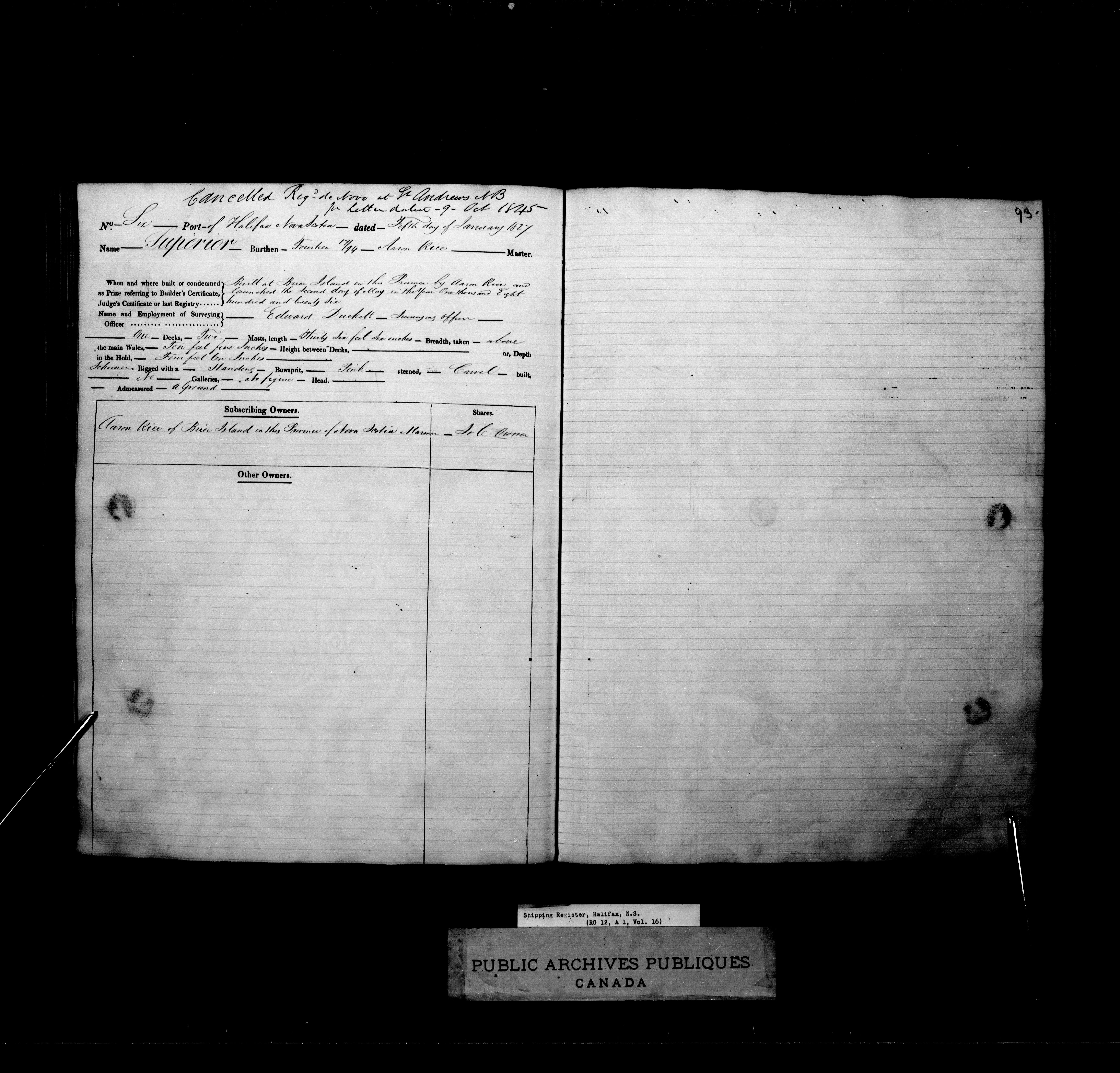 Halifax [Nova Scotia] Registrar of Shipping, 1817-1903 : C-2072